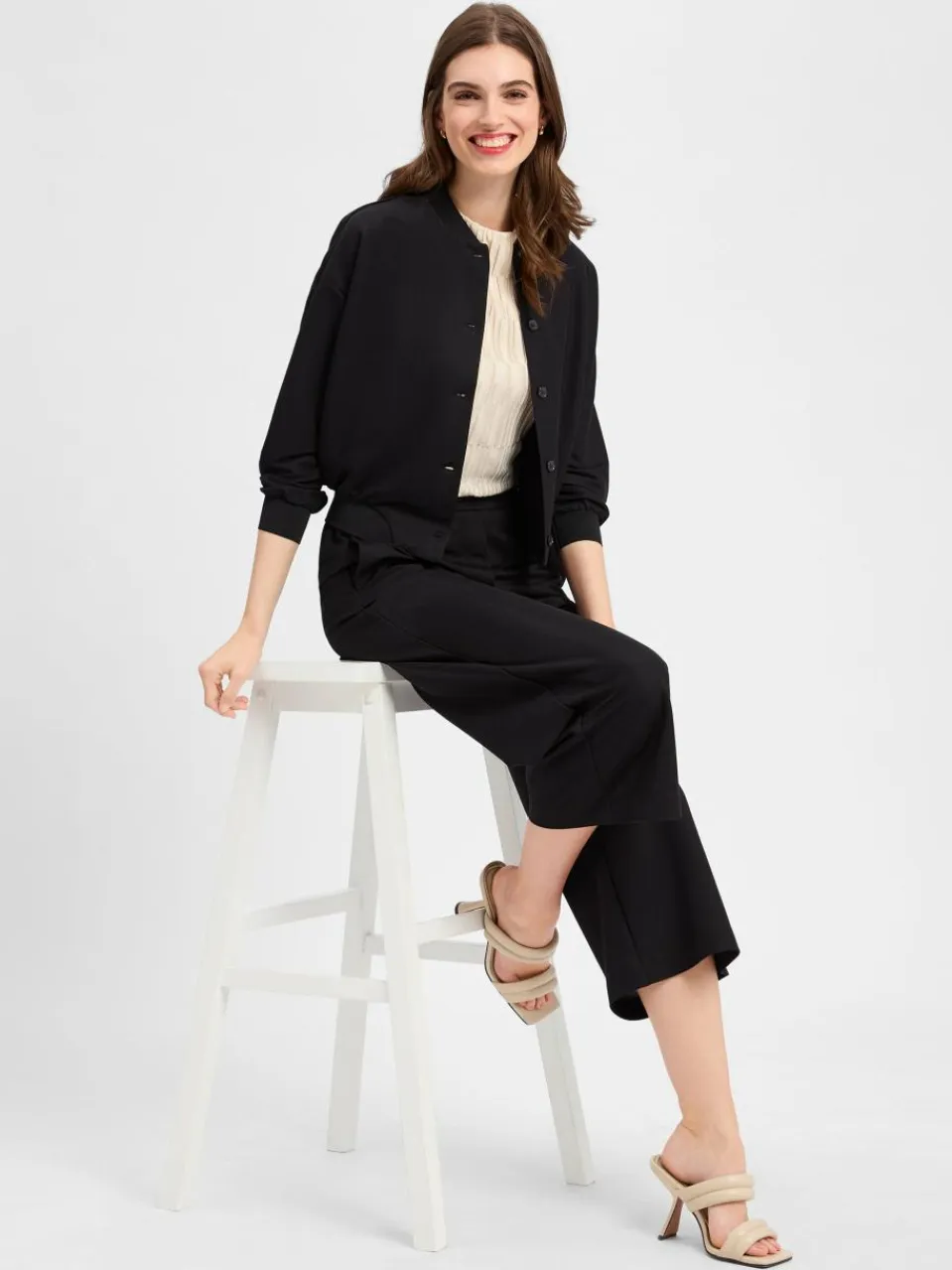 Der Collegekragen, gerippte Bündchen und überschnittene Schultern verleihen dem someday. Blazer Narlie einen sportiven Twist, ergänzt durch eine durchgehende Knopfleiste.