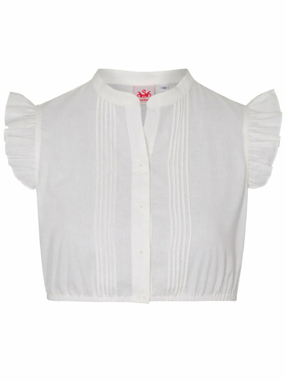 Mit der Dirndlbluse ‚Gablingen‘ ist jederzeit für einen femininen und dezenten Look gesorgt. Die Bluse ist trotz einer Länge von 34 cm, dank Bündchen, Rundhalsauschnitt sowie den kurzen Puffärmeln komfortabel zu tragen. Das feine Strukturmuster sowie die schlichte Knopfleiste sorgen weiterhin für einen eleganten aber gleichzeitig verspielten Touch. So ist ‚Gablingen‘ eine tolle Ergänzung zum festlichen Outfit und für die heimische Trachten-Garderobe.