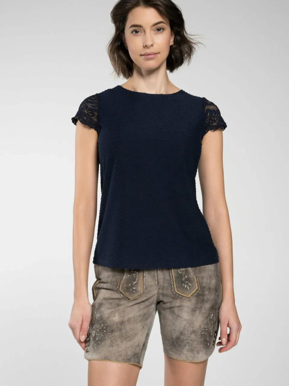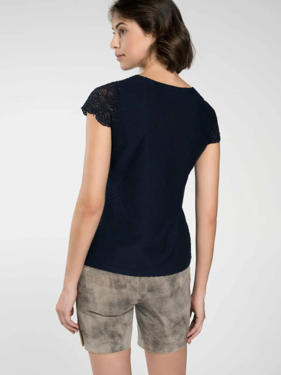 Die stilvolle und vielseitige Bluse ‚Fanja‘ von Spieth & Wensky besticht durch ihren Komfort und ihrer idealen Passform. Sie zeichnet sich weiterhin durch ihr unifarbenes Design mit Rundhalsausschnitt und kurzen Ärmeln aus. Die verspielten Details an den Ärmeln mit ihren feinen Spitzen sorgen auch für einen festlichen Charakter. So findest du mit der Bluse eine ideale Ergänzung für stilvolle Anlässe und flexible Trachtenkombinationen.
