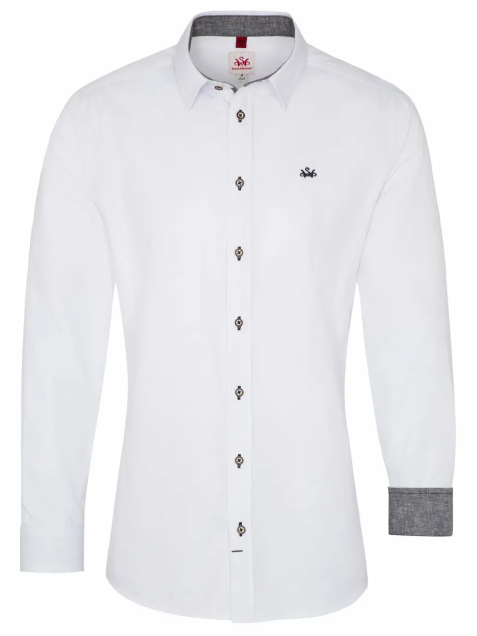 Einen jederzeit stilvollen Auftritt ermöglicht dieses langärmlige Trachtenhemd von Spieth & Wensky. Das unifarbene Design wird ergänzt durch die kleinen aber feinen Details, wie der eleganten Bruststickerei oder dem farbigen Ärmelabschluss ergänzt, welche dem Hemd eine exklusive Note verleihen. Die Slim-Fit Passform und die durchgängige Knopfleiste ermöglichen dabei ein angenehmes Tragen. So ermöglicht das Hemd einen stilvollen Look für traditionell-festliche Anlässe und für den Alltag.