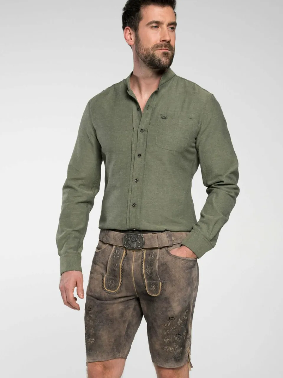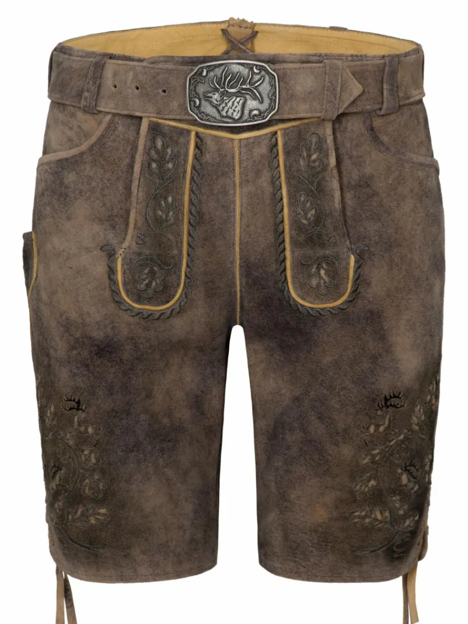 Für einen ehrlichen und traditionellen Trachtenlook steht die Lederhose ‚Fürstenzell‘ für Herren von Spieth & Wensky. Sie besticht durch ihre Vielfalt an Details, welche Stickerein vom Latz bis zu den Beinenden beinhalten. Das modische Hightligt ist die detaillierte und elegante Gürtelschnalle mit Hirschkopf-Emblem. Schnürungen an den Beinenden vollenden das Design dieser Trachtenhose und machen sie zum Must-Have für Trachtenliebhaber.