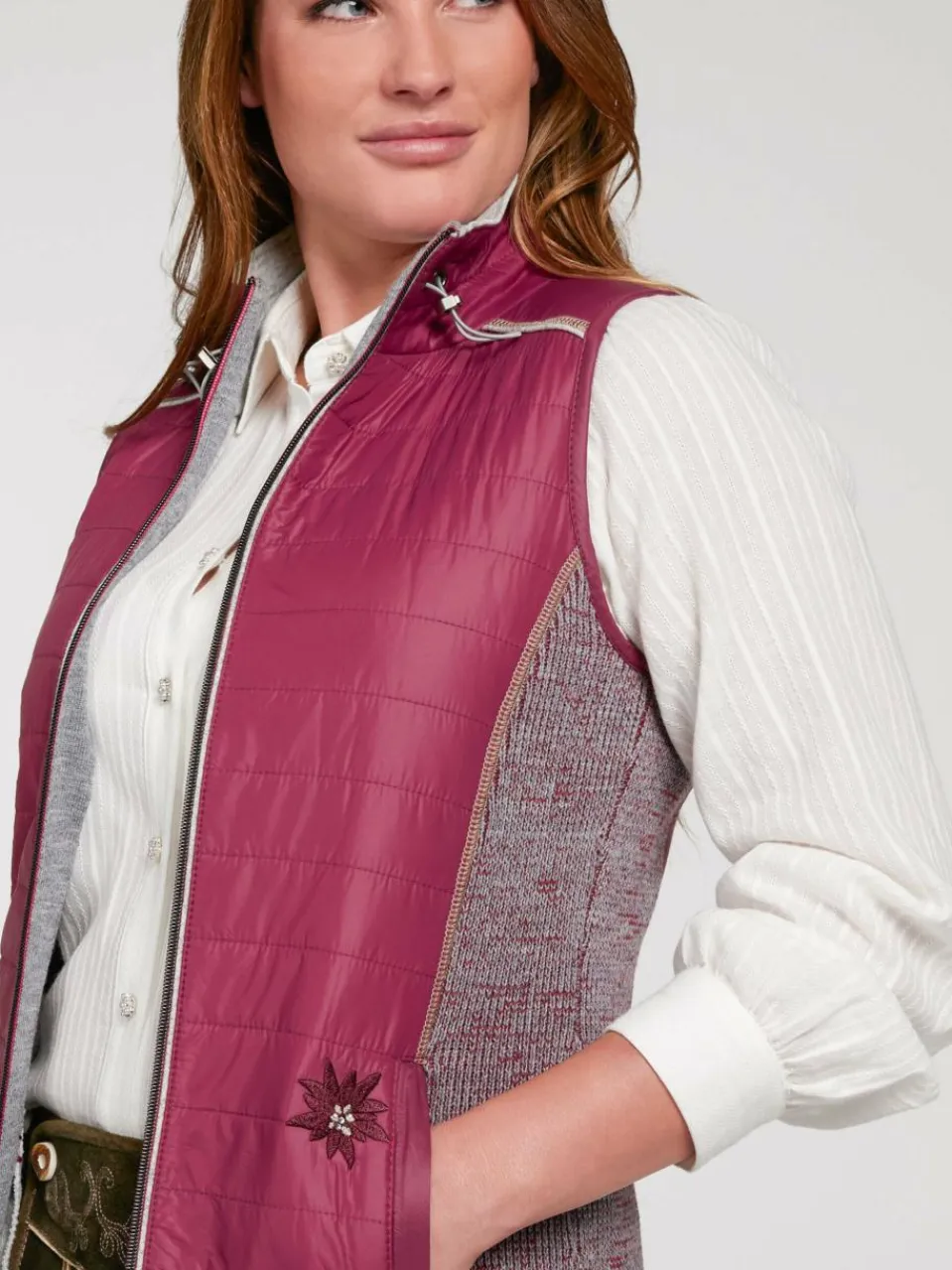 Kommen Sie gut gestylt durch kühle Herbsttage – mit dieser sportiven Weste von Spieth&Wensky. Die floralen Stickereien erzeugen trendige Akzente. Sie begeistert durch ihre figurbetonende Passform. Verspielt und in femininer Optik präsentiert sie sich in unifarbenem Design. Zusätzlich ist diese Weste wegen ihres robusten Gewebemixes aus Strick und Stepp besonders langlebig. Der klassische Stehkragen und der Saum sind mit praktischen Zugbändern versehen.