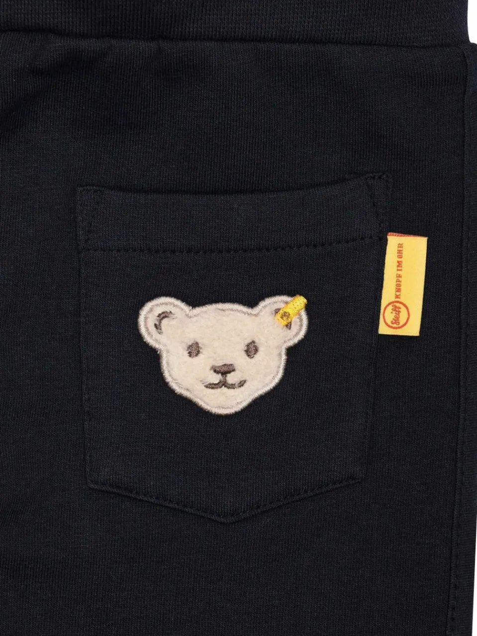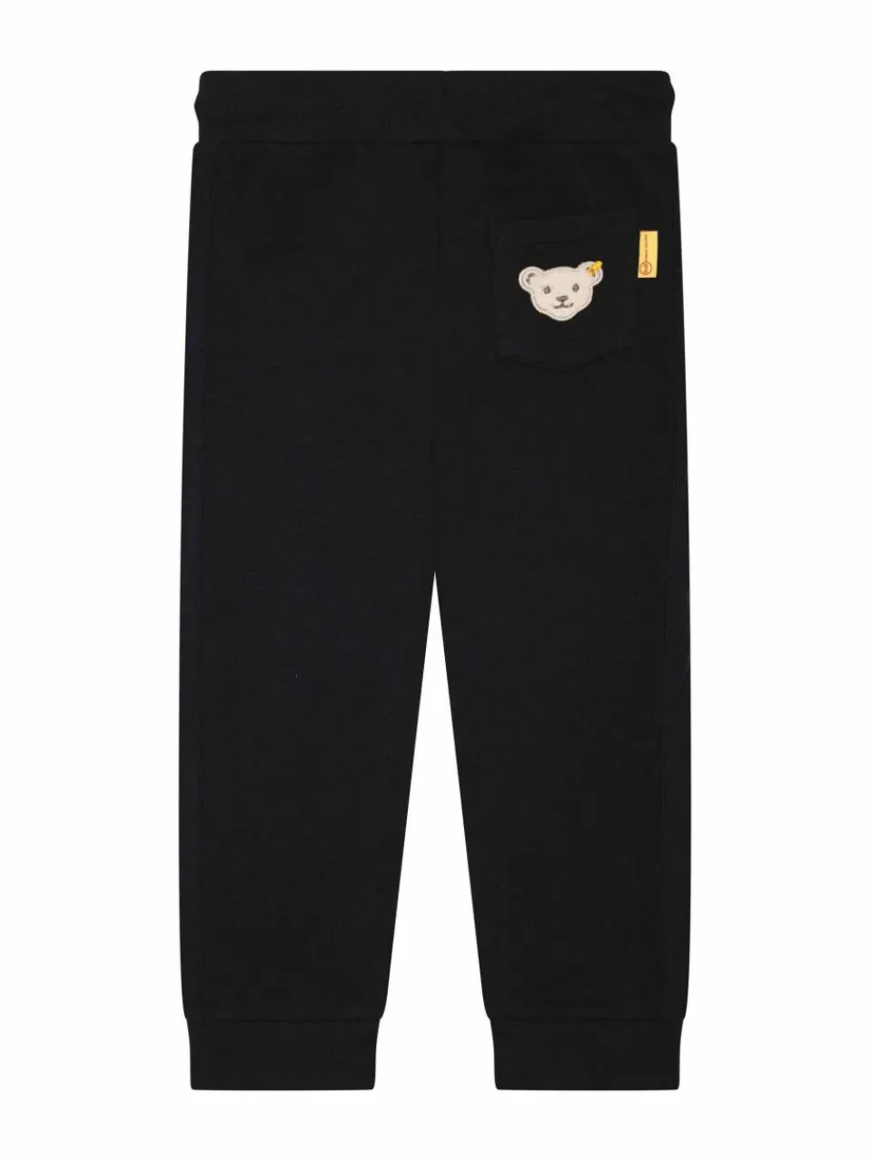 Gemütlich und trendig zugleich verwöhnt diese Jogginghose kleine Weltentdecker beim Spielen, Chillen oder auf Reisen. Innen aufgerauter Sweat wärmt und sorgt für ein herrliches Tragegefühl. Lockere Passform sowie ein Gummizugbund mit Tunnelzug machen jede Aktivität mit. Aufgesetzte Galonstreifen sowie elastische Rippbündchen am Beinabschluss bieten tolle Stylingmöglichkeiten. Unterwegs wird Ihr Kleiner von einem Steiff Teddybärmotiv auf der hinteren Tasche begleitet. So bequem!