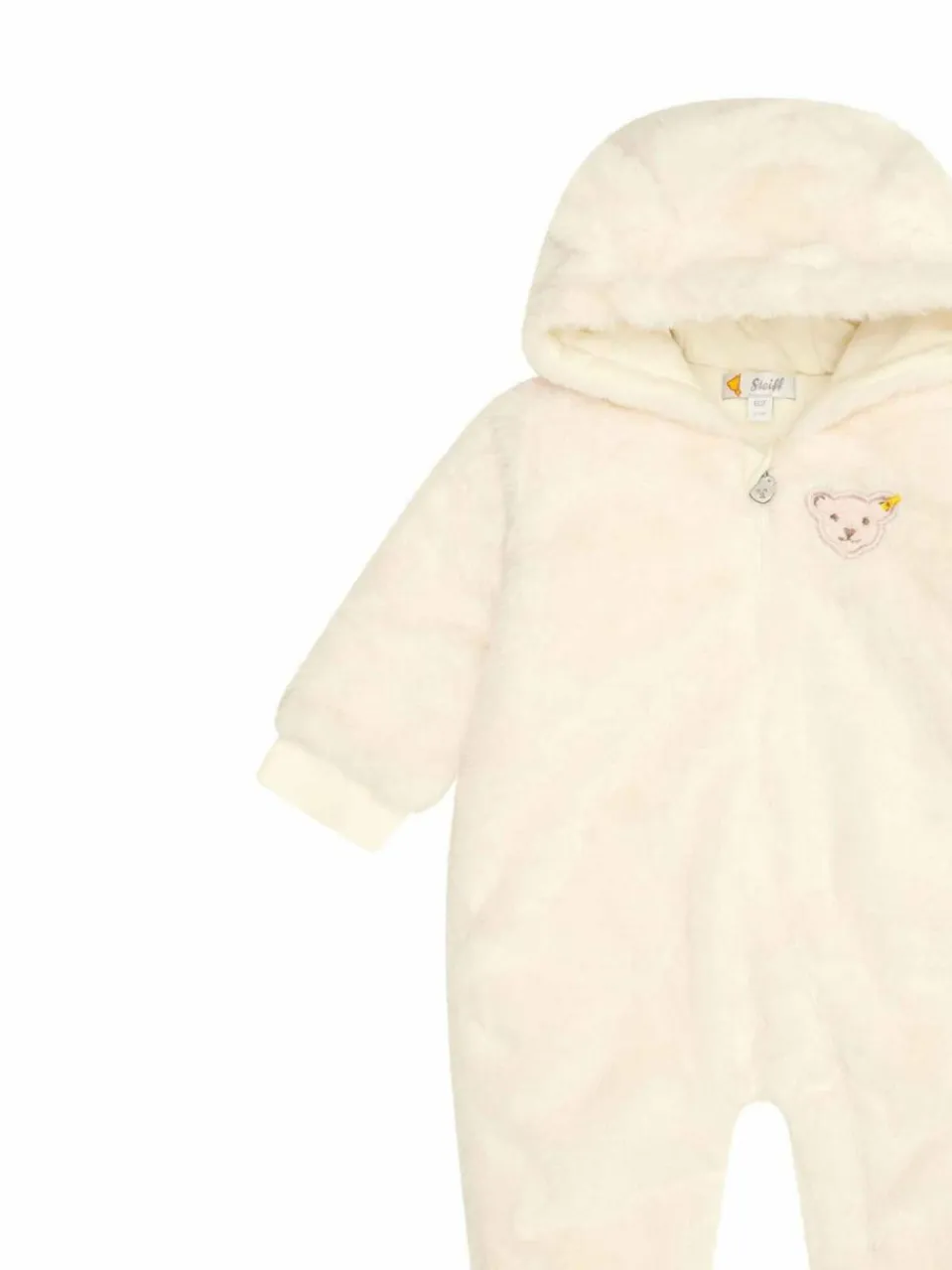 Von Kopf bis Fuß auf Kuscheln eingestellt wärmt unser Einteiler aus Plüsch die kleinsten Ausflüglerinnen, wenn es draußen kühler wird. Lockere Passform und flexible Bündchen bieten aktiven Mädchen Bewegungsfreiheit und Komfort auch bei längeren Ausfahrten im Kinderwagen. Die Kapuze passt gut über die Mütze und begeistert mit lustigen Bärenohren. Für alle Fälle ist ein flauschiges Steiff Teddybärmotiv unterwegs dabei. Zum Liebhaben!