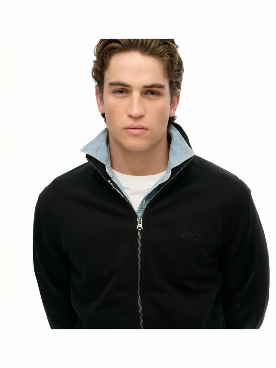 Sweatjacke für Herren von der Marke Superdry. Hochwertige Jacke mit Stehkragen und kleinem Logo auf der Brust. Angenehmer Tragekomfort.