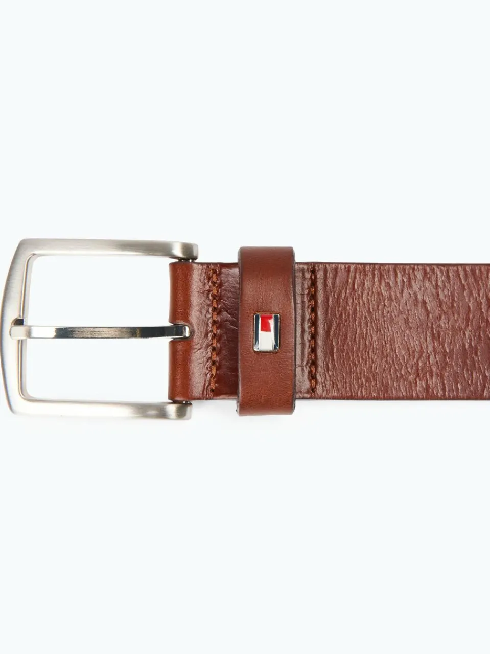 Aus mattem Glattleder gefertigt lässt sich dieser Tommy Hilfiger Gürtel optimal mal elegant und mal lässig kombinieren.