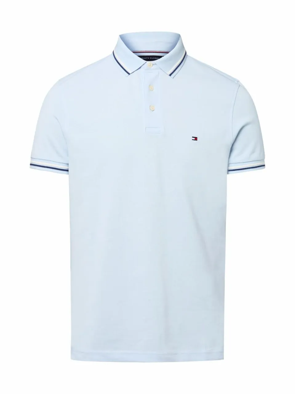 Die Streifen am Kragen und an den Ärmelbündchen setzten coole Akzente im sonst cleanen Design des Slim Fit Polos von Tommy Hilfiger.