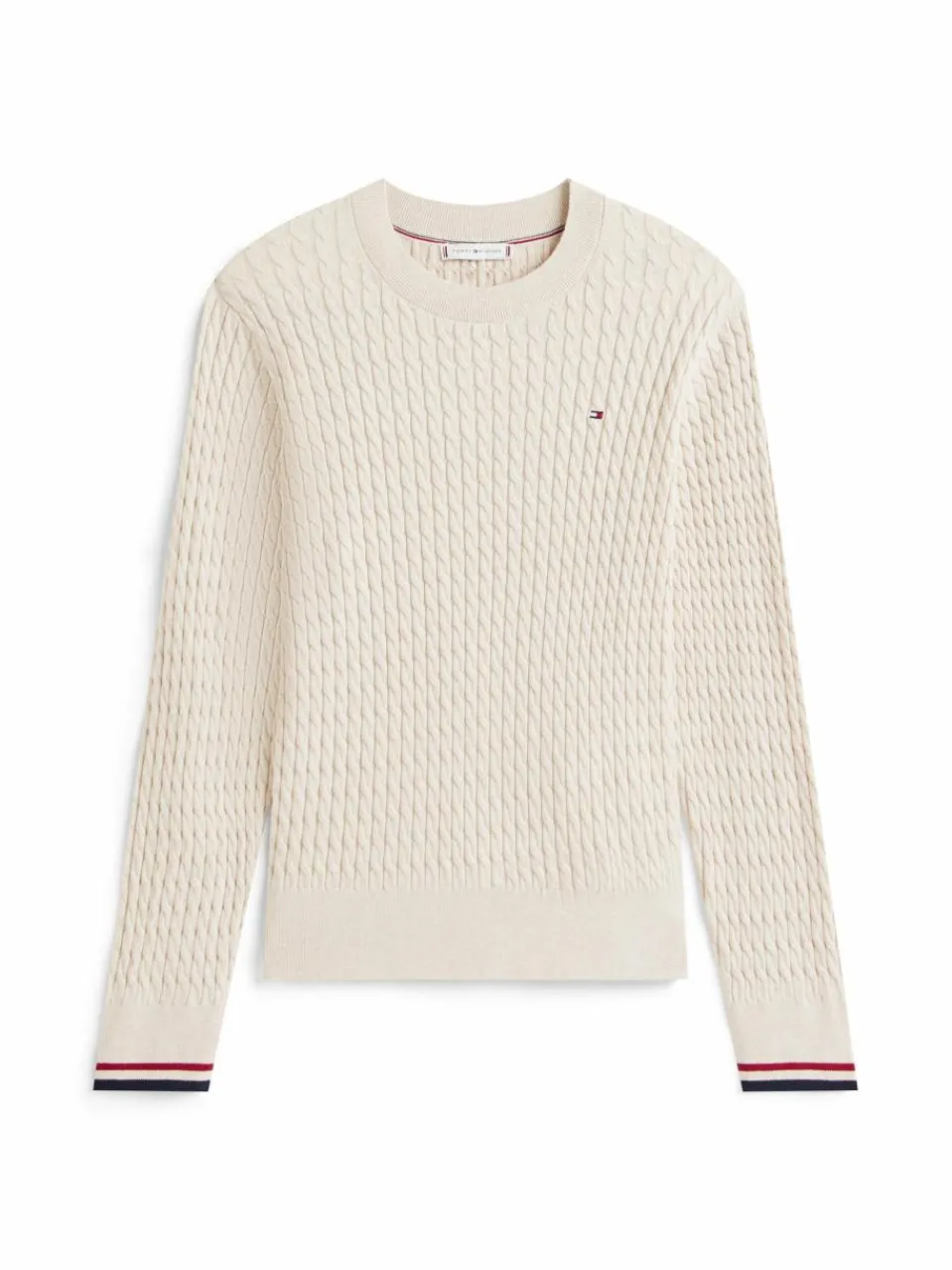 Der Zopfstrickpullover von Tommy Hilfiger aus Baumwolle verleiht dem Casual Look nonchalant ein smart sportives Finish.