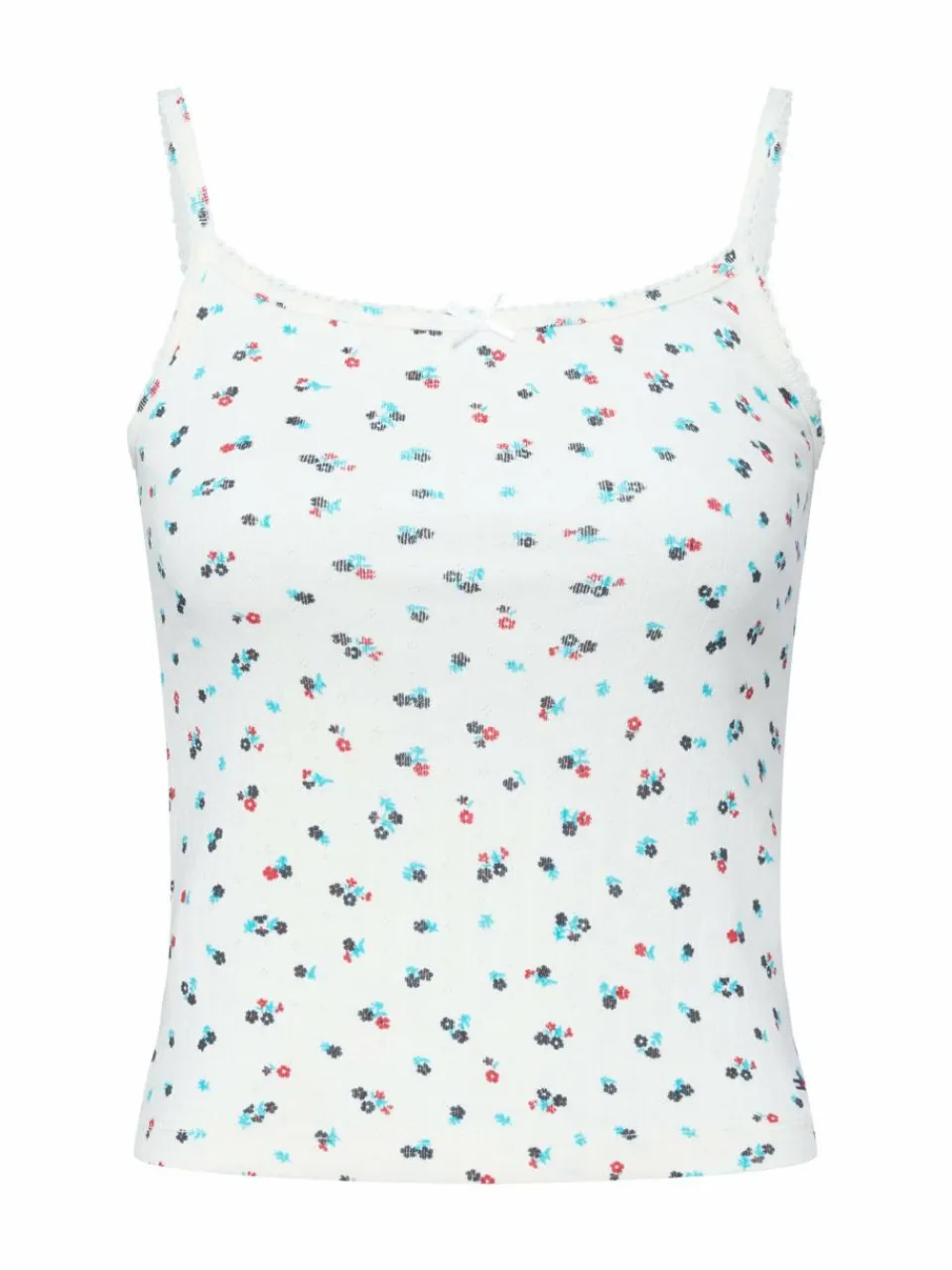 Ajour-Details, Millefleurs-Design, Picots und Zierschleife kreieren den femininen Stil des zarten Tommy Jeans Tops.