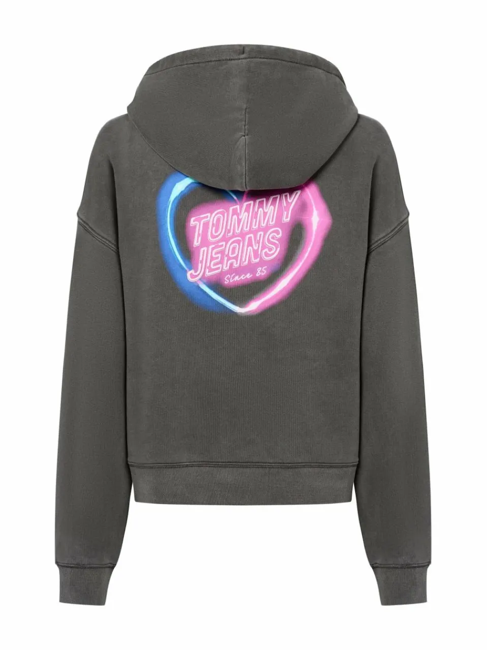 Im coolen Retro-Look: der locker geschnittene Tommy Jeans Hoodie in dezenter Washed-Optik mit Labeling im Neon-Design.