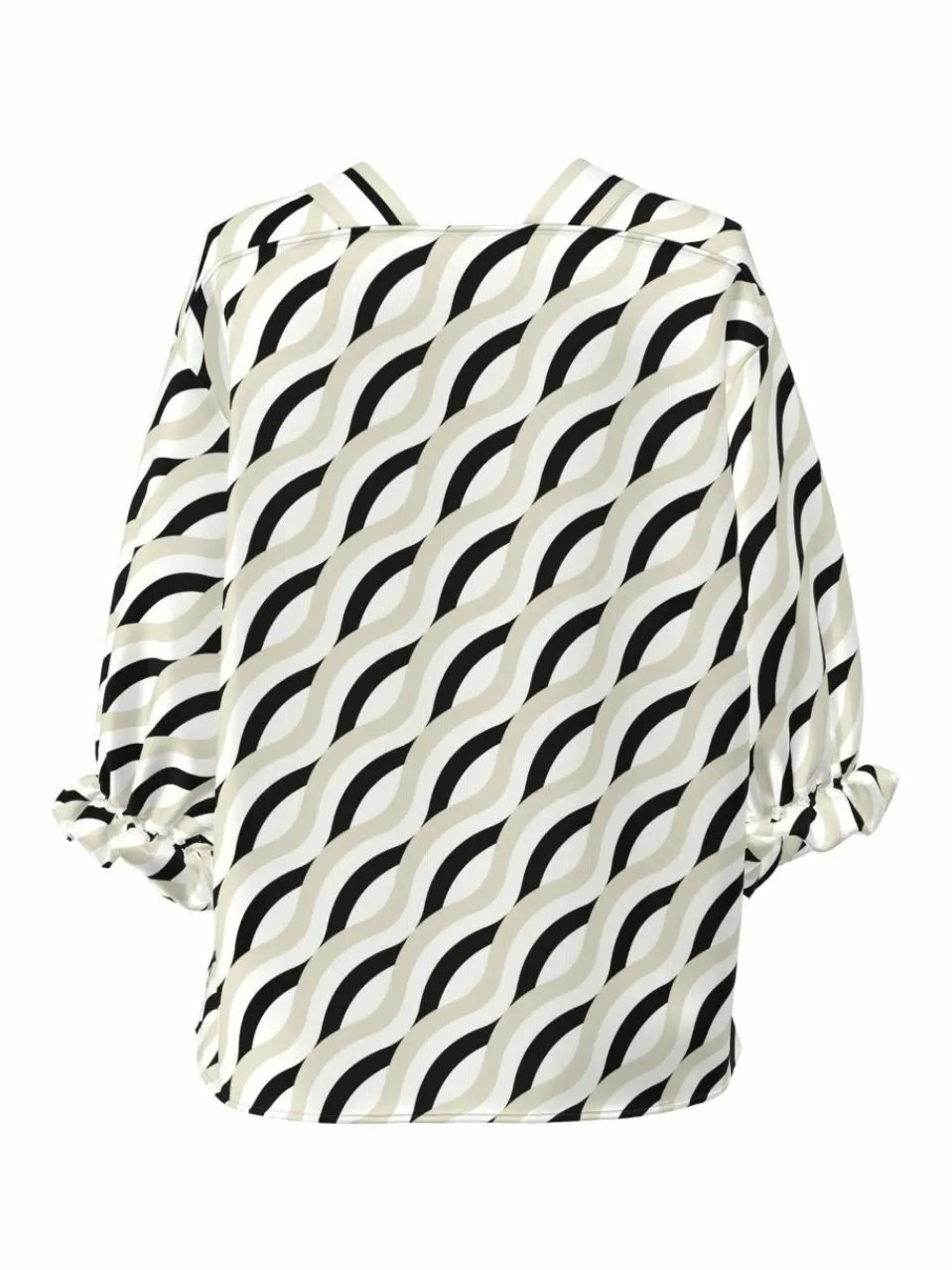Leichte Bluse mit ausdrucksstarkem Muster, locker fallend mit V-Ausschnitt und verspielten Ärmel-Details – perfekt für einen modernen Look.