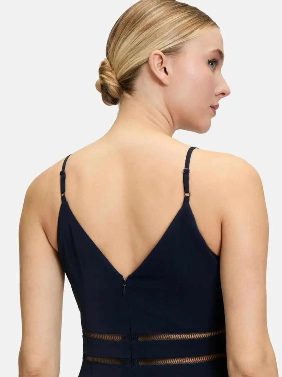 Dieser elegante Jumpsuit ist die perfekte Wahl für festliche Anlässe und sorgt dafür, dass Sie immer stilvoll gekleidet sind. Mit dem aufgesteppten Band und den raffinierten Mesheinsätzen verleiht er Ihrem Look eine besondere Note. Der taillierte Schnittund der V-Ausschnitt betonen Ihre Silhouette, während die verstellbaren Träger für optimalen Tragekomfort sorgen. Praktische Nahttaschen bieten zusätzlichen Stauraum. Ob bei einer Feier oder einem besonderen Event – mit diesem Jumpsuit sind Sie immer bestens angezogen!