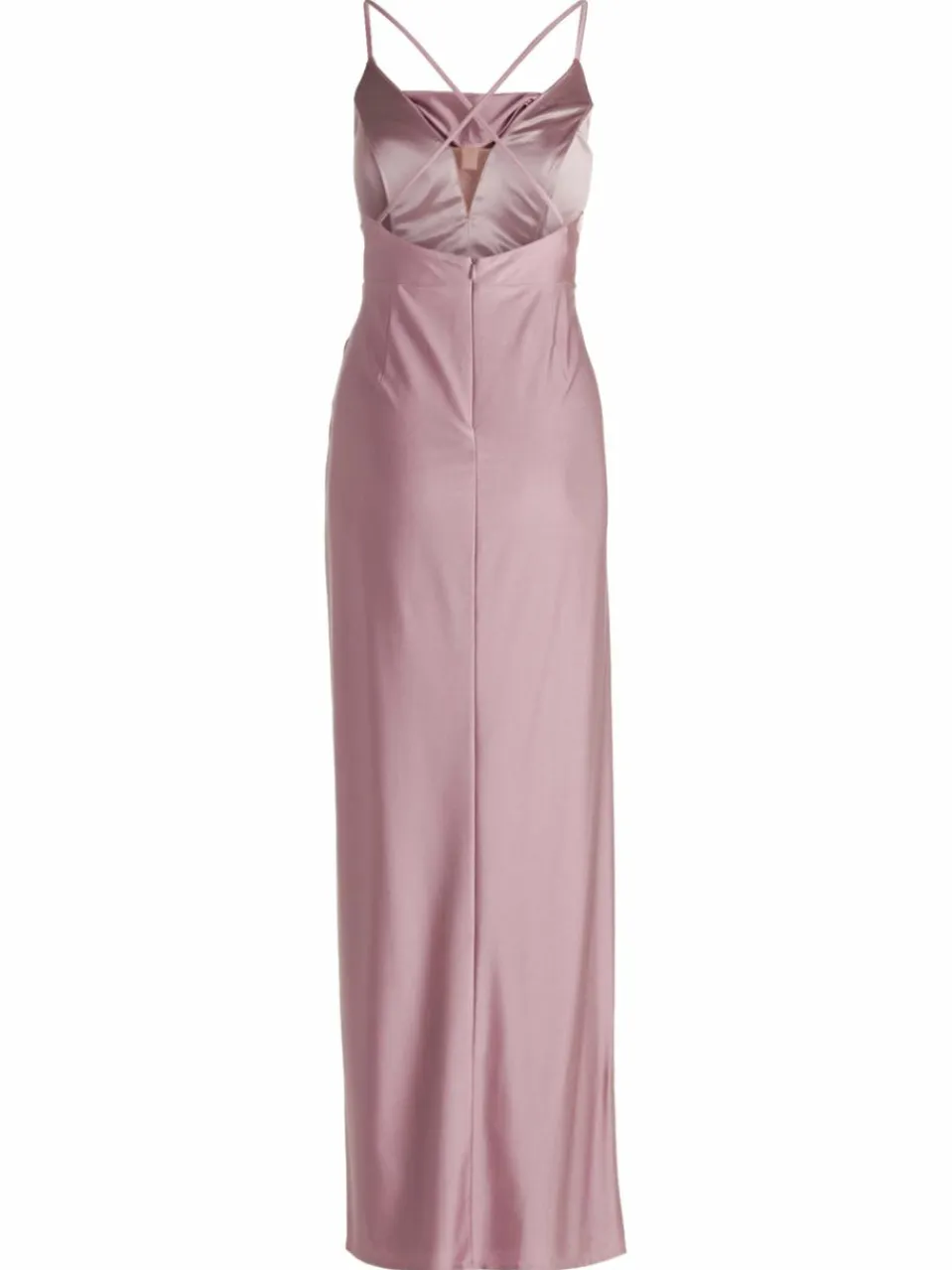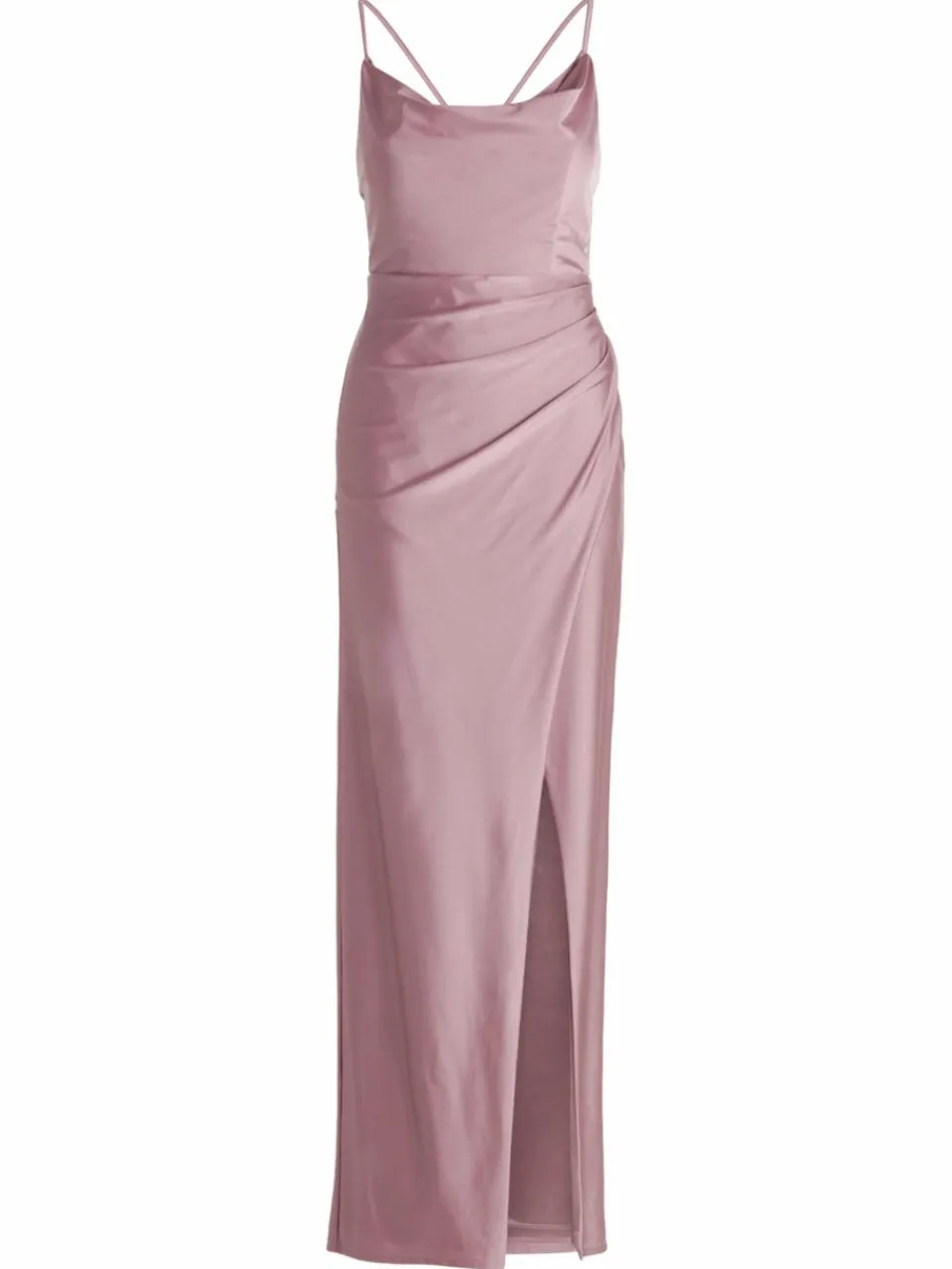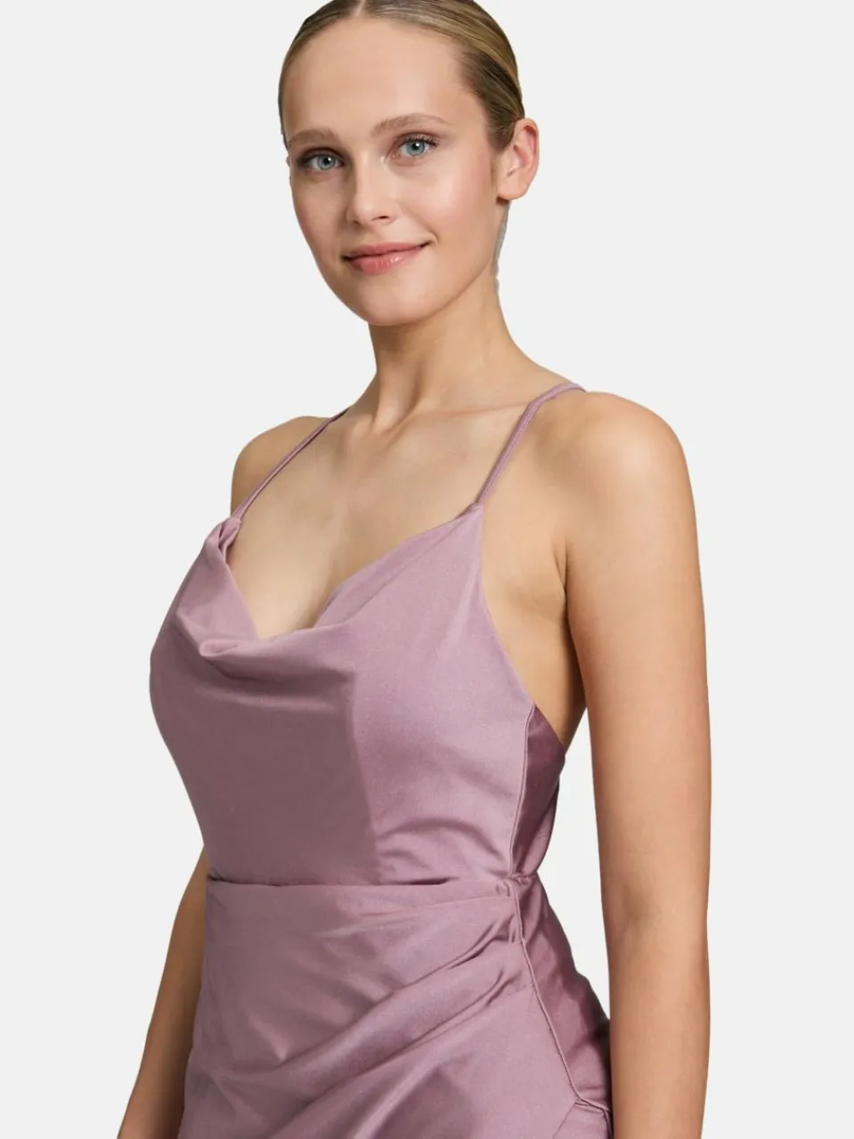 Das elegante Abendkleid von Vera Mont besticht durch ein raffiniertes Design: Eine geraffte Taille, ein hoher Schlitz und ein Wasserfallausschnitt verleihen dem Kleid eine besondere Note. Das figurbetonte, ärmellose Satinmodell bietet durch die verstellbaren Träger individuellen Tragekomfort und wird durch einen Reißverschluss ergänzt. Ideal für besondere Anlässe.