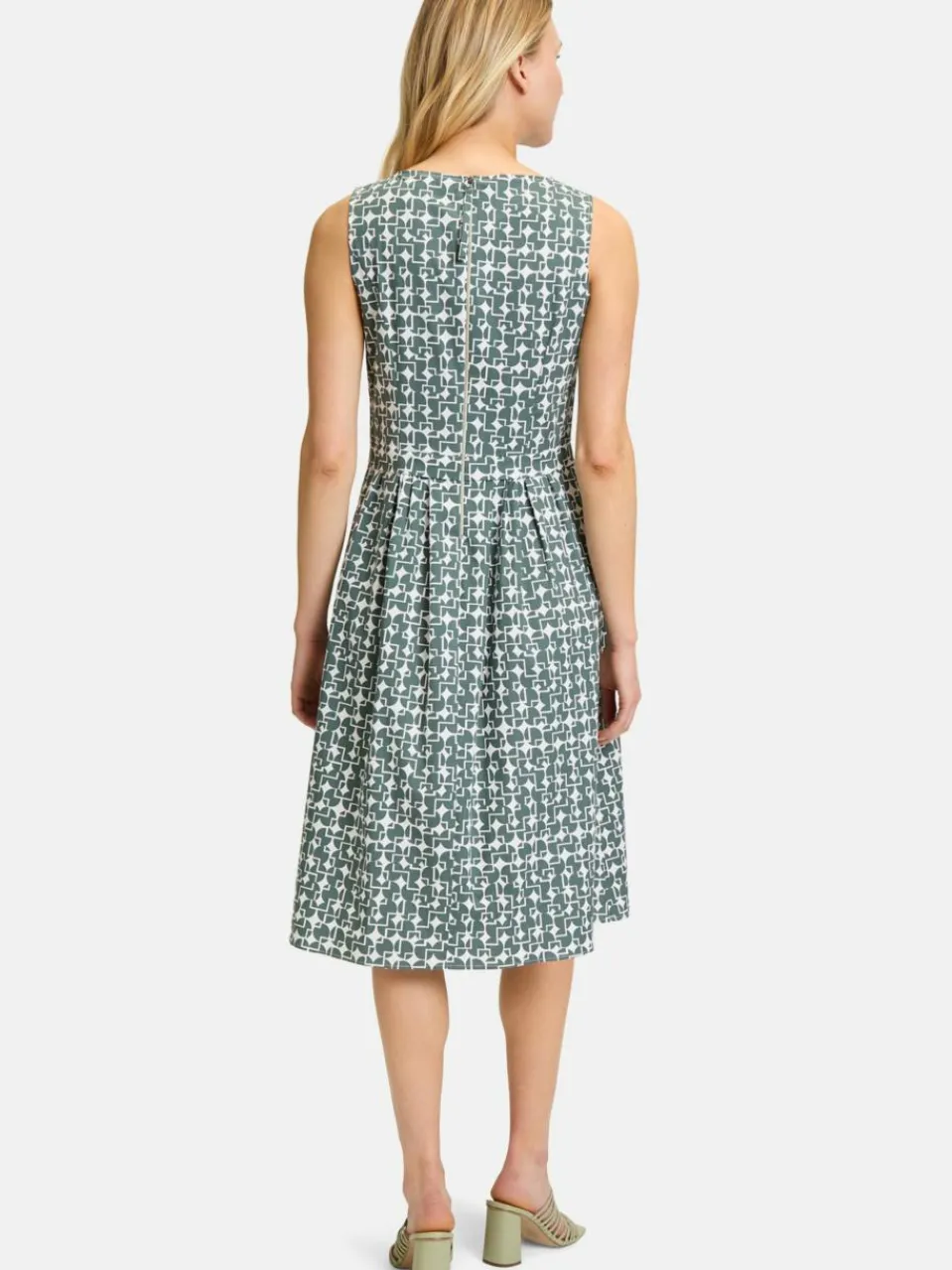 Dieses modische Highlight ist ein echtes Must-have für den Sommer! Das ärmellose Sommerkleid besticht durch sein feminines Design mit grafischem Muster und einem eleganten Rundhalsausschnitt. Der taillierte Schnitt und die feinen Falten verleihen dem Kleid eine charmante Silhouette. Hergestellt aus einer leichten Baumwoll-Mischung, bietet es höchsten Tragekomfort. Praktische Details wie der Reißverschluss und die Nahttaschen machen es zum perfekten Begleiter für stilvolle Auftritte.