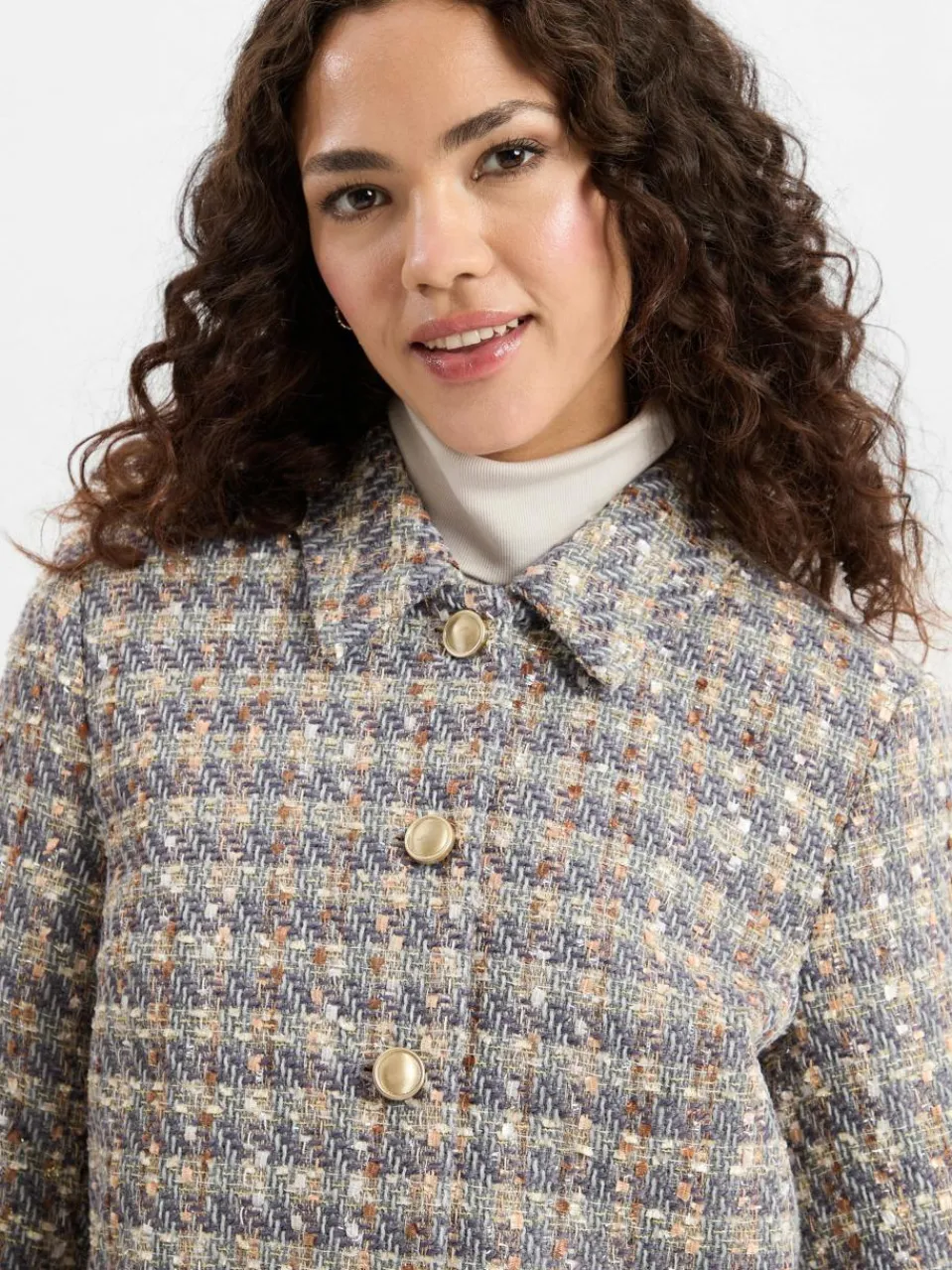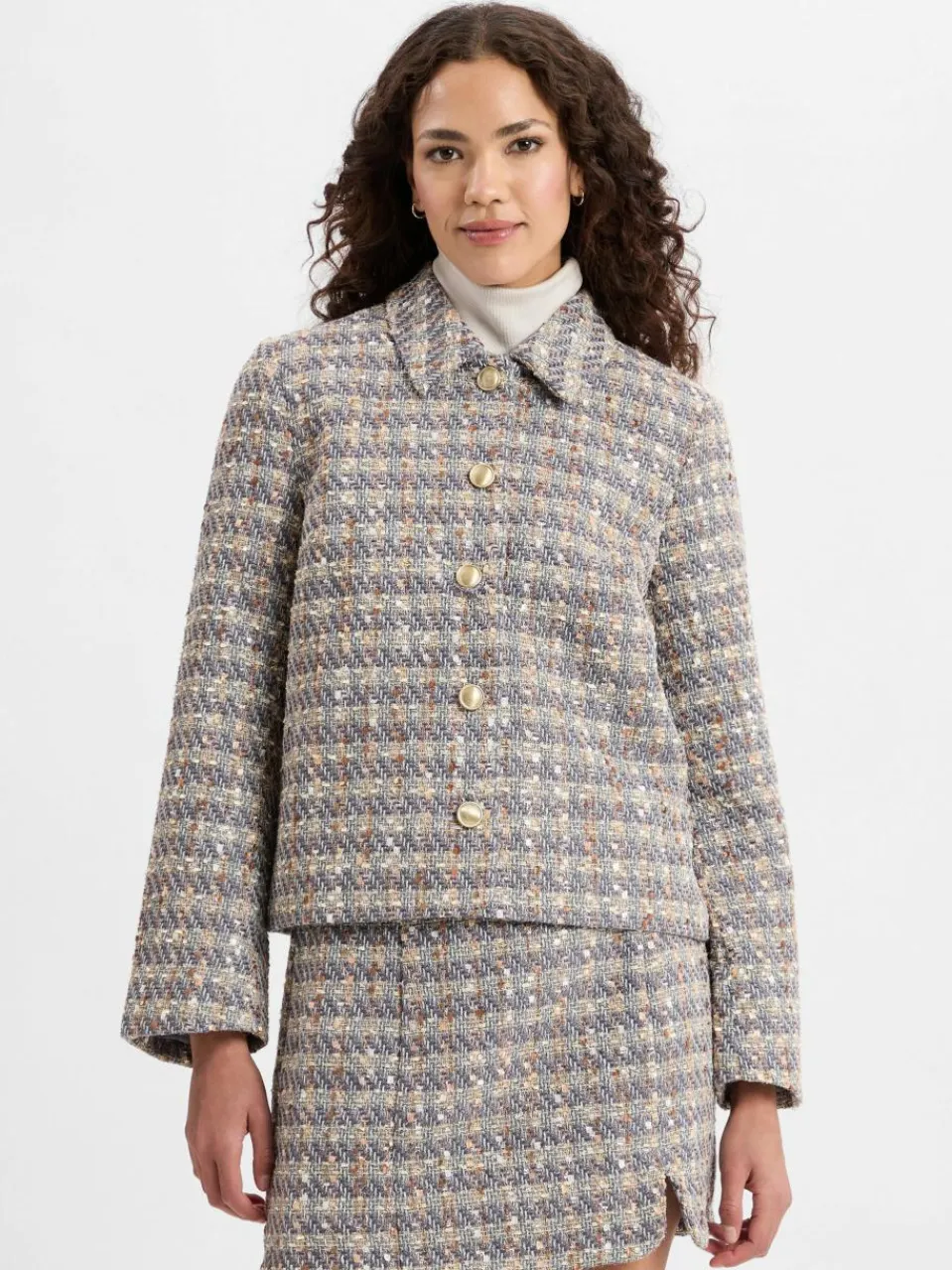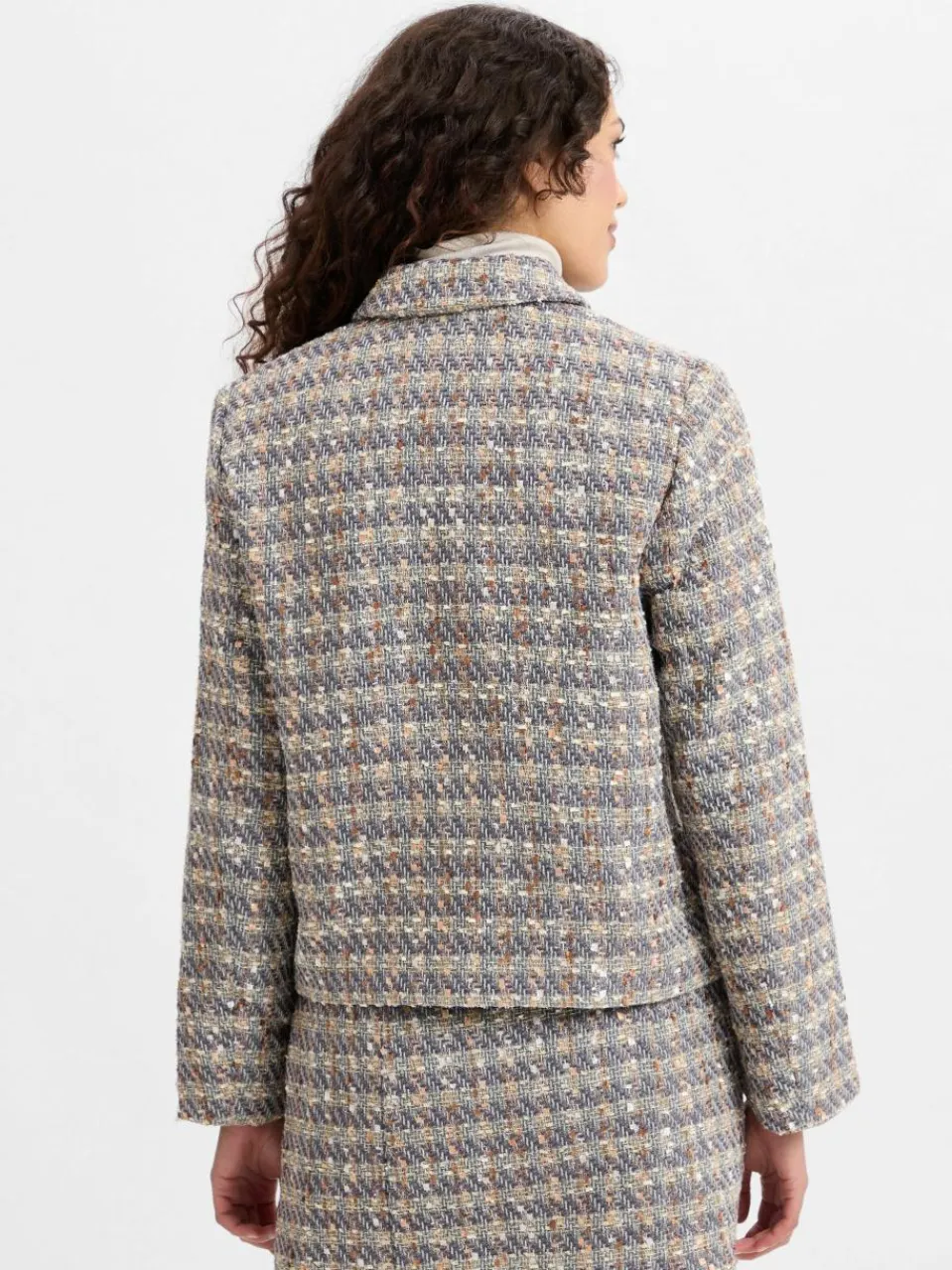 Der schicke Blazer YASSiraz von Y.A.S. präsentiert sich in einer stilvollen Bouclé-Optik, die durch eingearbeitete Metallic-Fäden einen subtilen Glanz erhält.