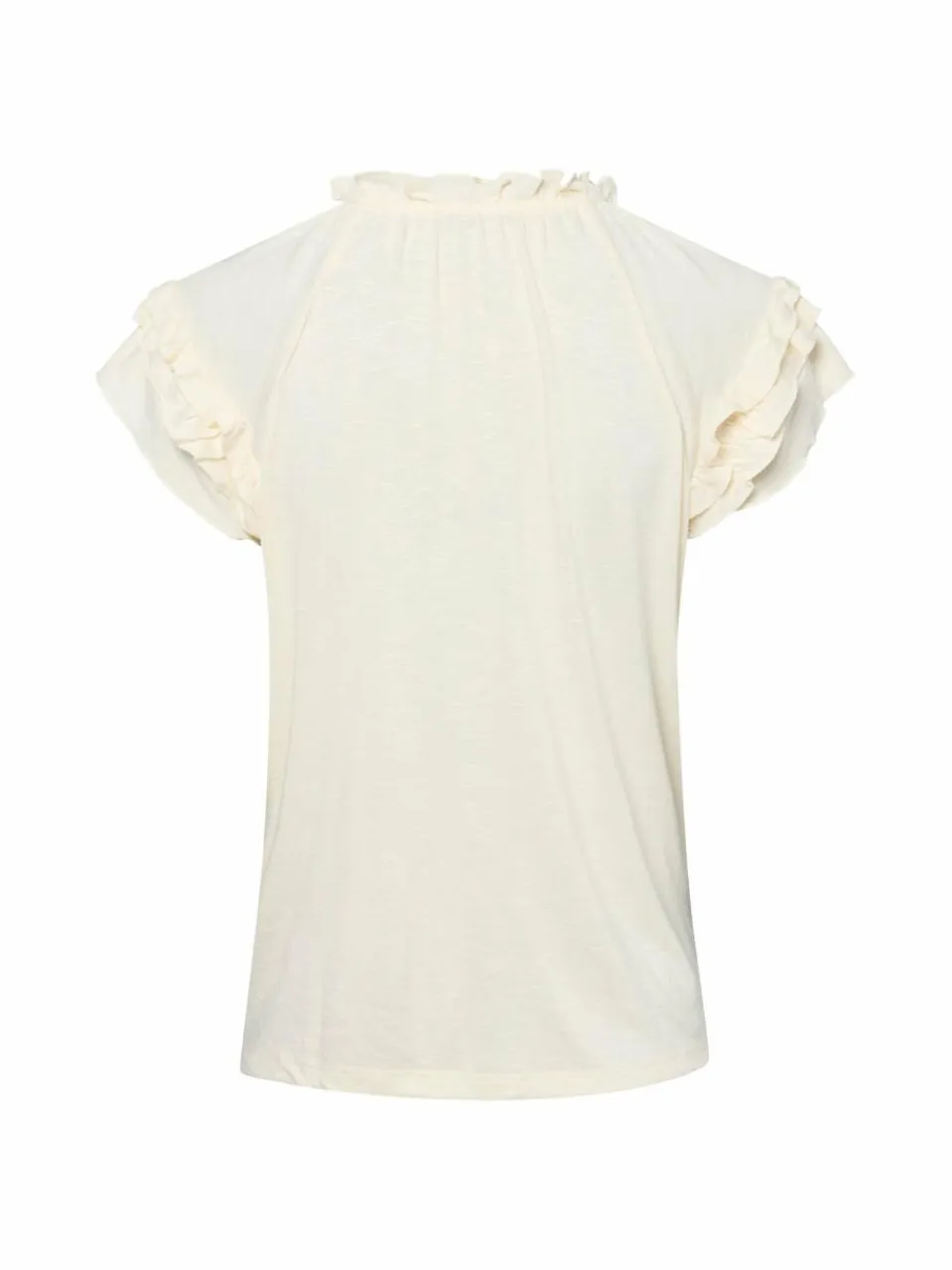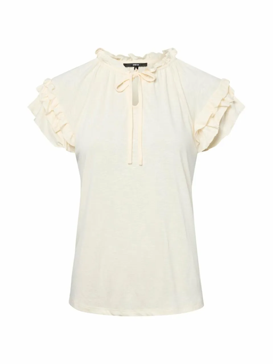 Feine Volants am Ausschnitt und an den kurzen Raglanärmeln zeichnen das zero T-Shirt als romantisches Piece für Looks mit Jeans, Marlenehose oder Midirock aus.