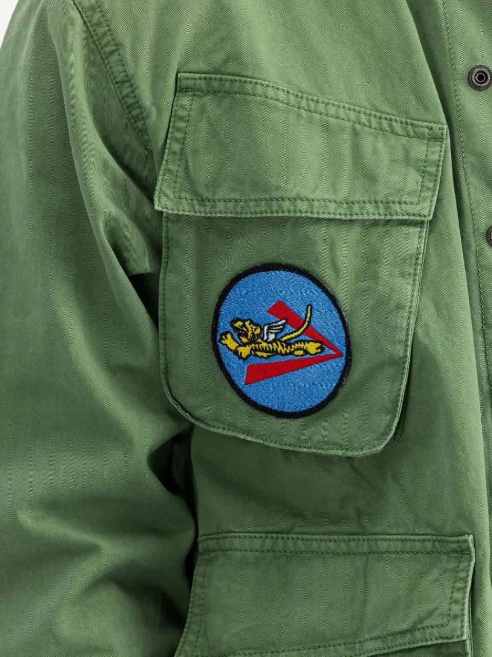 Entdecke die Field Jacket Flying Tigers von Alpha Industries: Diese Herrenjacke aus Twill-Baumwolle bietet robusten Komfort im Regular Fit. Mit vier geräumigen Taschen und einem schützenden Knopfverschluss ist sie funktional. Besonders sind die Animal Patches und das Flag Label am Ärmel. Druckknöpfe an den Ärmeln für Anpassung, während die Utility Pocket mit RBF Tag auffällt. Vorn zeigt sich ein Alpha Label und ein kleines Logo. Ideal für urbane Entdeckungstouren.