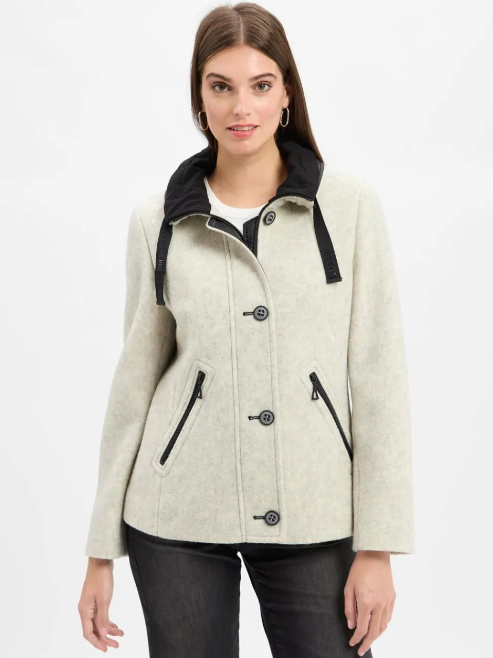 Die Jacke von Amber & June punktet mit einer wollenen Qualität und coolen Kontrastdetails als stilvoller Übergangs-Style mit sportivem Flair.