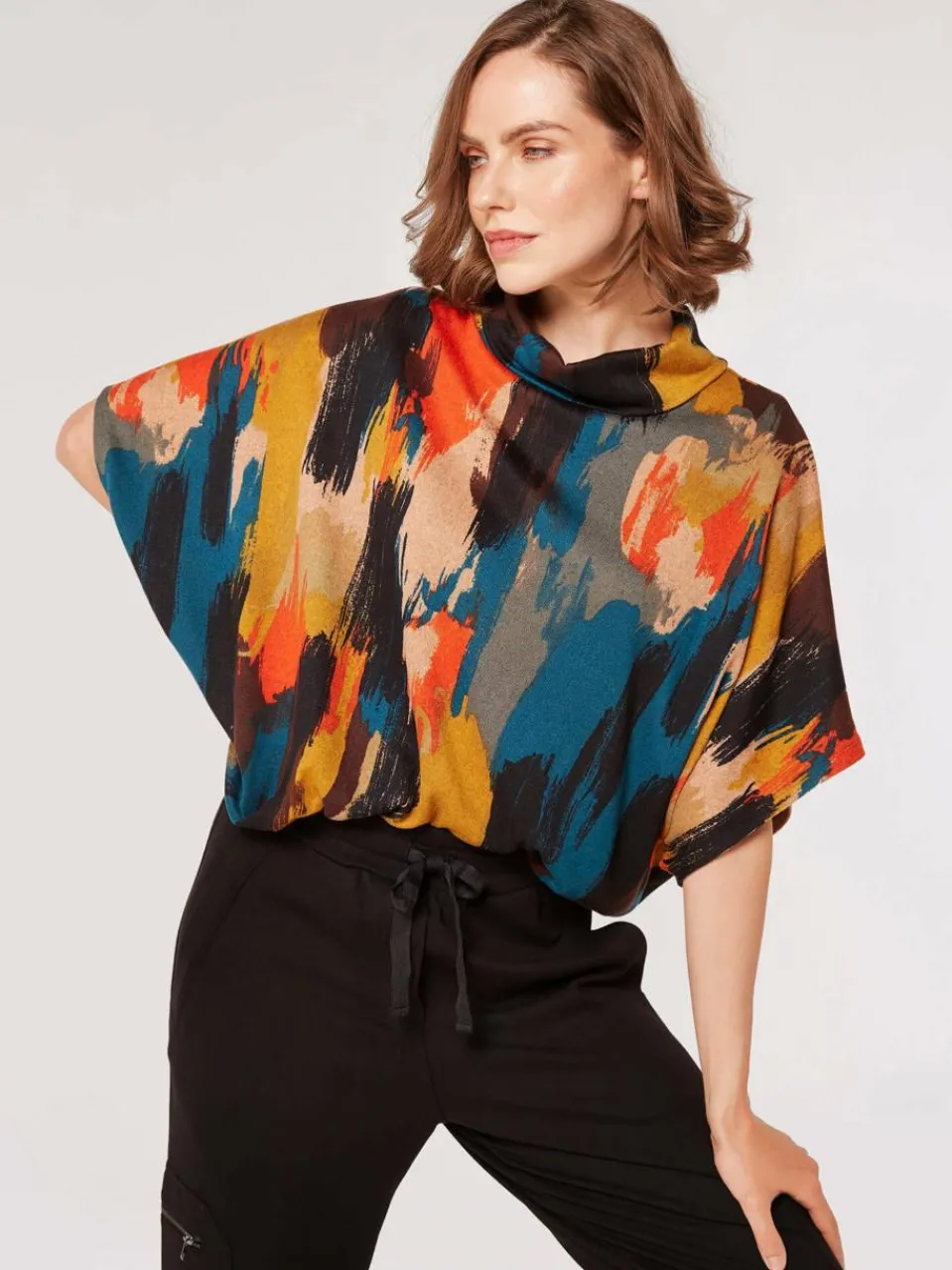 Kombinieren Sie Komfort und Stil mit diesem gestrickten Kapuzenoberteil. Es ist superweich und kuschelig, hat eine lockere Passform, ein auffälliges Pinselstrichmuster, einen Rollkragen und Fledermausärmel.Kombinieren Sie es an lässigen Tagen mit Jeans und Ankle Boots.