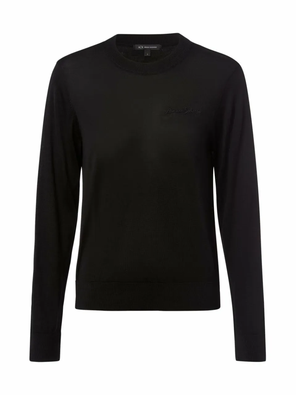 Der Armani Exchange Pullover besteht aus leichter Schurwolle und zeichnet sich durch gerippte Bündchen und ein toniges Labelstitching auf Brusthöhe aus.
