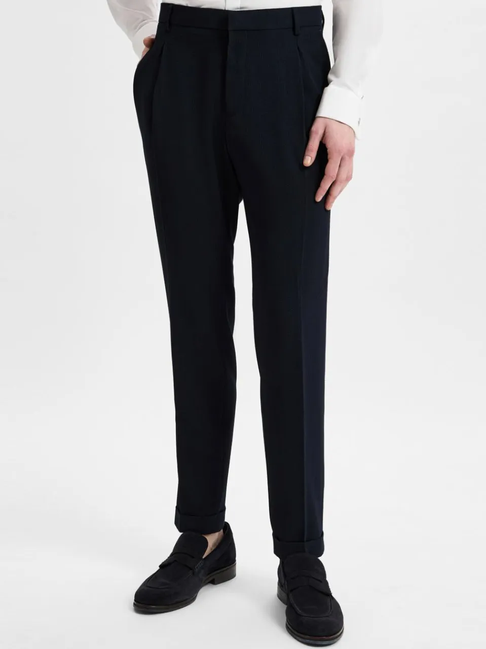 Die Anzughose Torino von Benvenuto hat einen modernen Schnitt und ist aus einer Kunstfaser-Qualität, die sich durch ihre Struktur angenehm anfühlt. Die Hose ist Teil eines Baukasten-Anzugs, kann aber auch allein getragen werden.