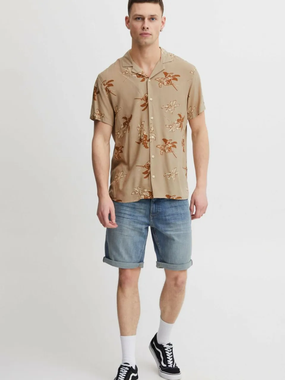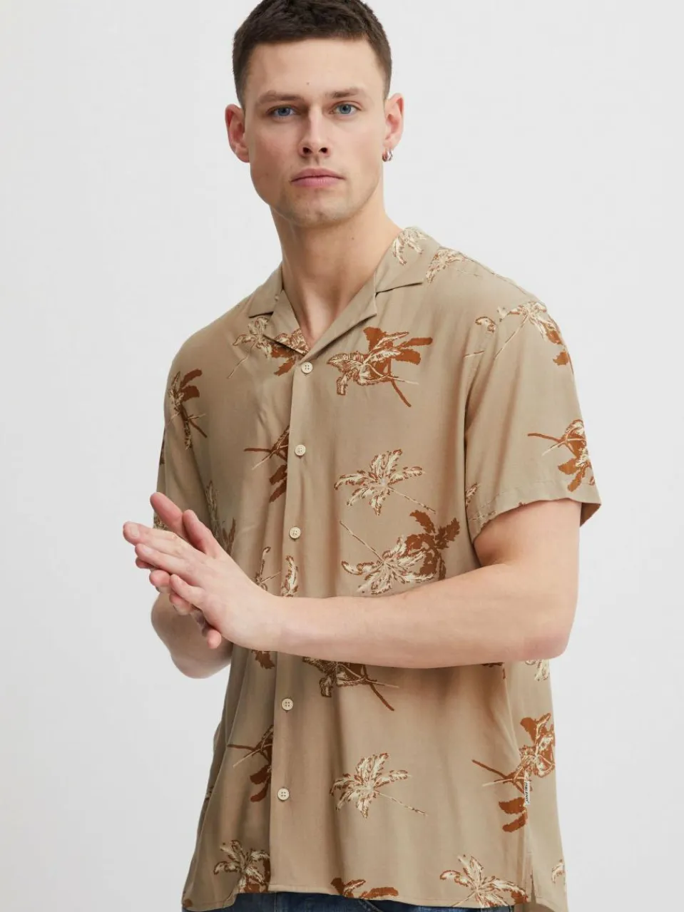 BLEND Hemden<Herren Kurzarmhemd beige gemustert