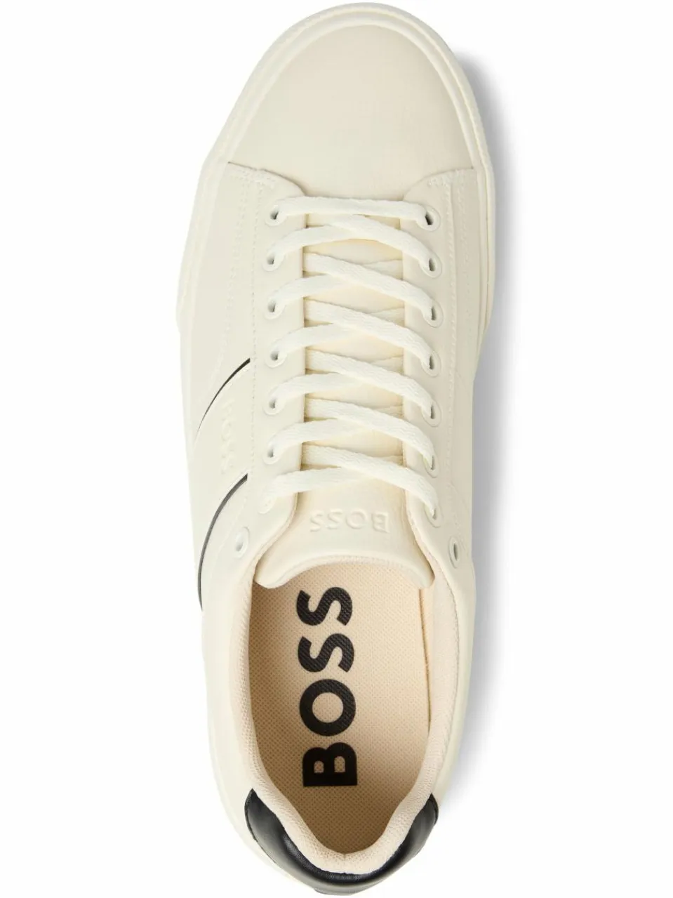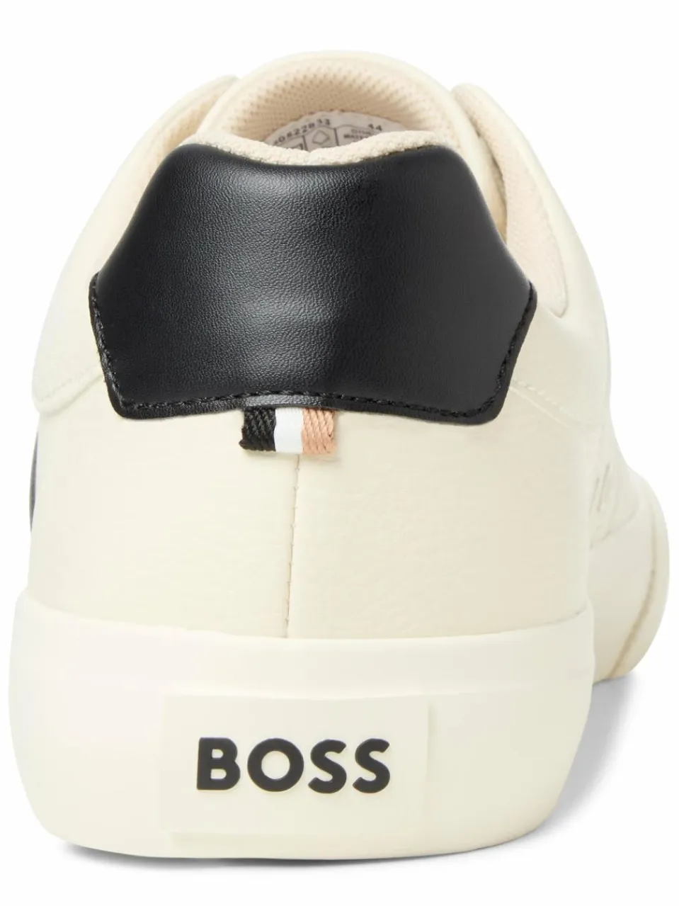 Zarte Label-Akzente lockern den klassischen Charakter der BOSS Sneaker Aiden_Tenn aus fein genarbtem Kunstleder schön auf.