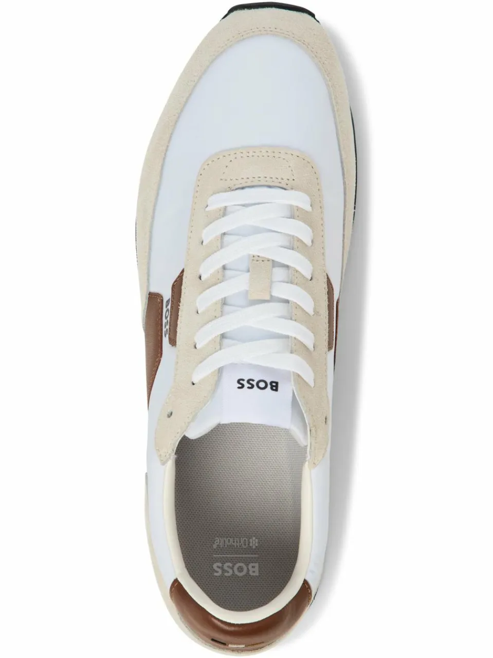 Die BOSS Sneaker Parkour Runn bestechen durch den coolen Material-Mix aus Leder, Textil und Synthetik und verleihen dem Look sofort sportiven Charme.