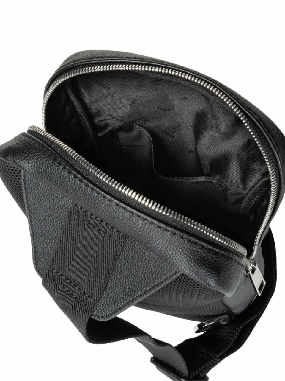 Diese Sling Bag von BOSS vereint Komfort und modernes Design in einer kompakten, eleganten Tasche aus genarbtem Kunstleder. Ideal für den urbanen Alltag, bietet sie ausreichend Stauraum und intelligente Fächer.