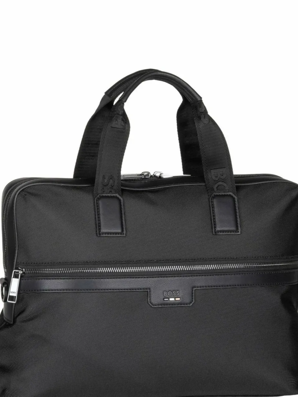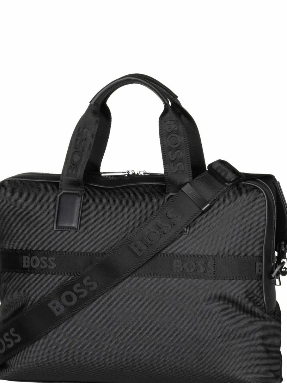 Diese Aktentasche von BOSS vereint Funktionalität mit modernem Stil: Aus recyceltem Polyester gefertigt, ist sie langlebig und bietet optimalen Platz und Organisation für den Berufsalltag.