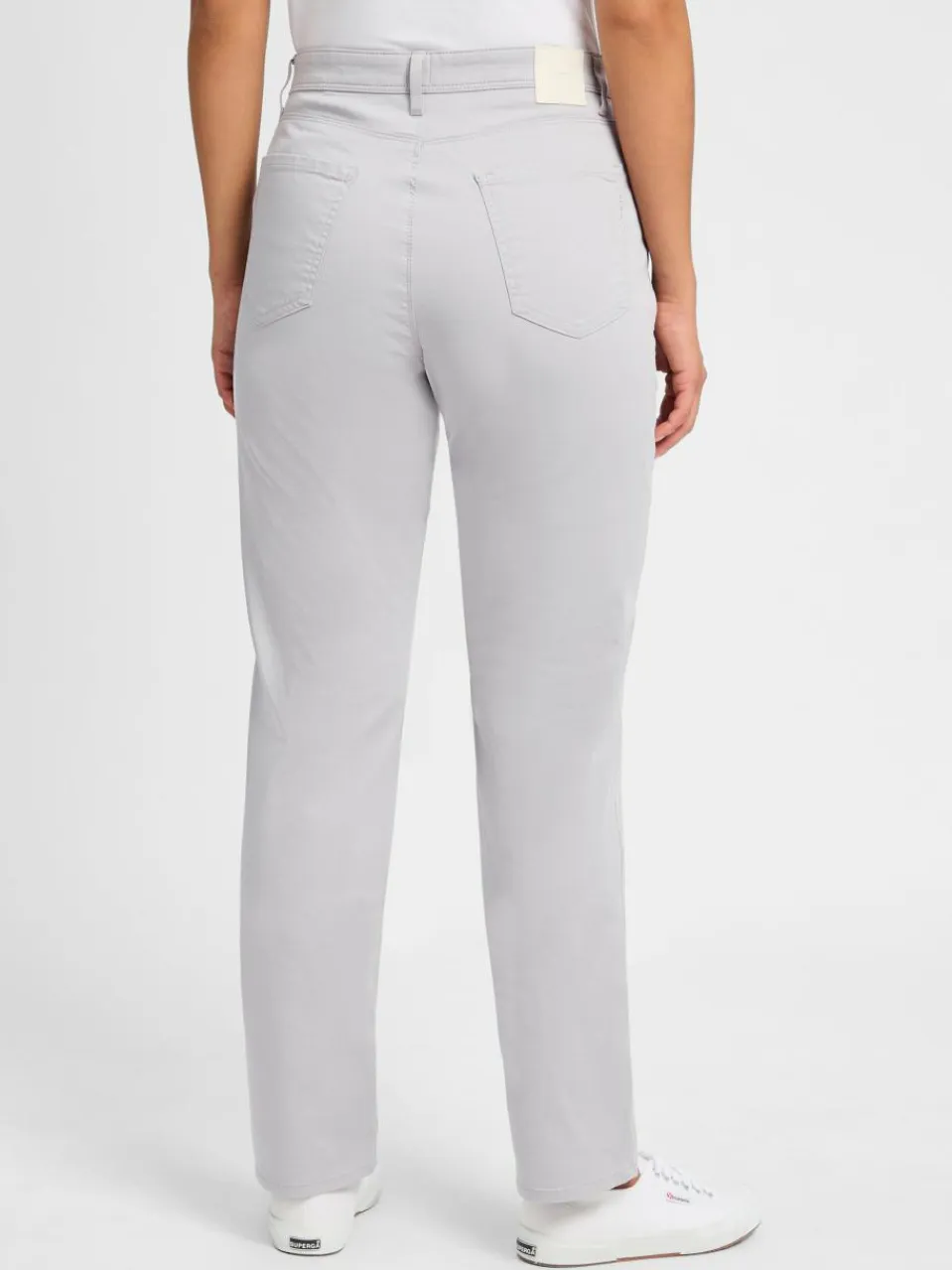 Die Hose Carola von BRAX bietet dank Baumwollstretchs einen hohen Tragekomfort, während feine Ziersteine an den Backpockets einen funkelnden Akzent setzen.
