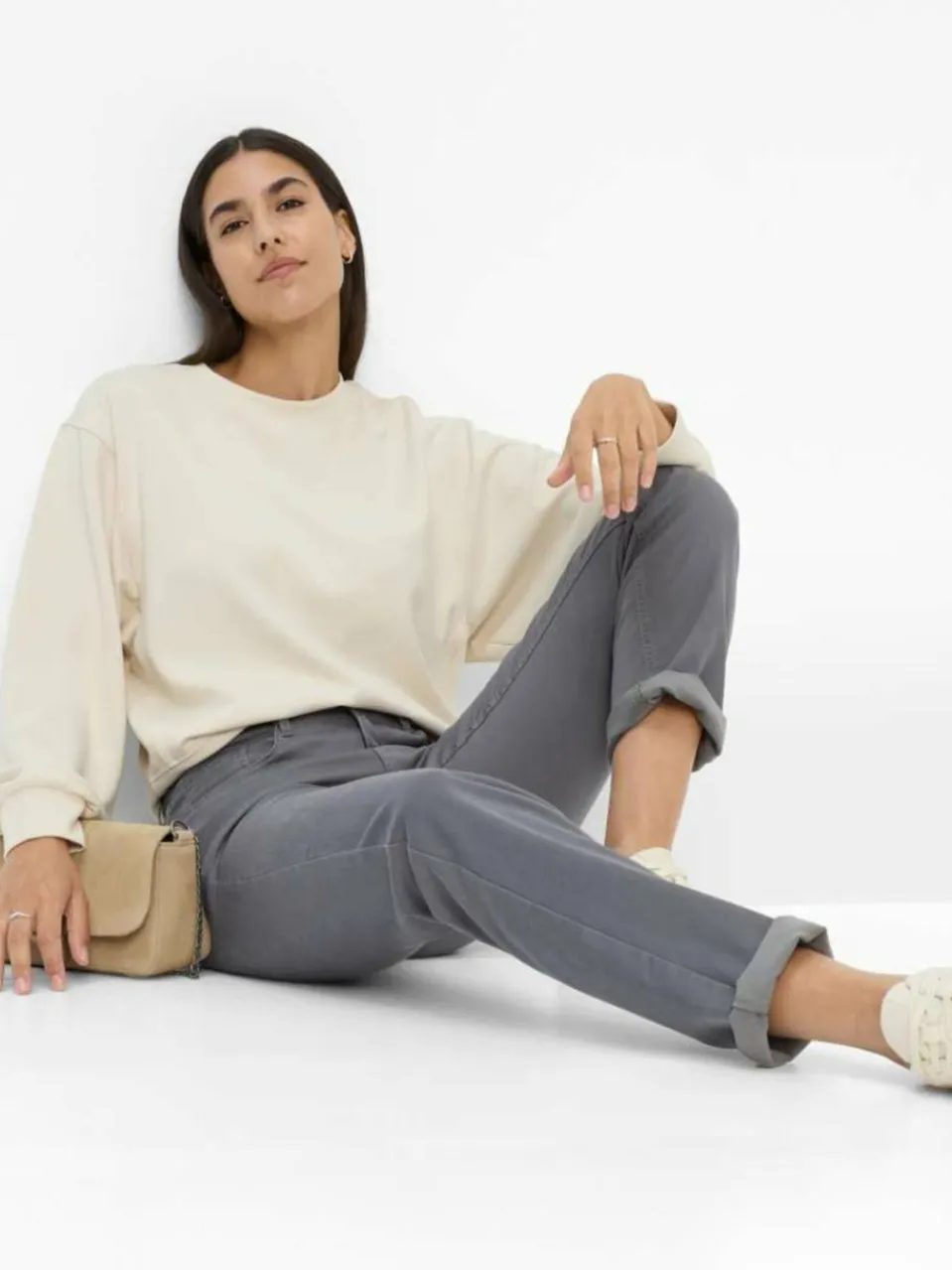 Das klassische Five-Pocket-Design der BRAX Jeans Mary erhält durch kleine Glitzersteinchen an der Gesäßtasche eine besondere Note – und dank der soften Stretch-Qualität verfügt sie über einen extrem hohen Tragekomfort.