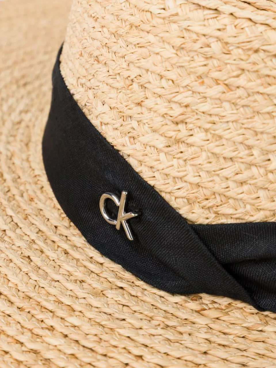 Der Calvin Klein Stroh-Hut mit Leinen-Ripsband vereint zeitlose Eleganz mit sommerlicher Leichtigkeit.