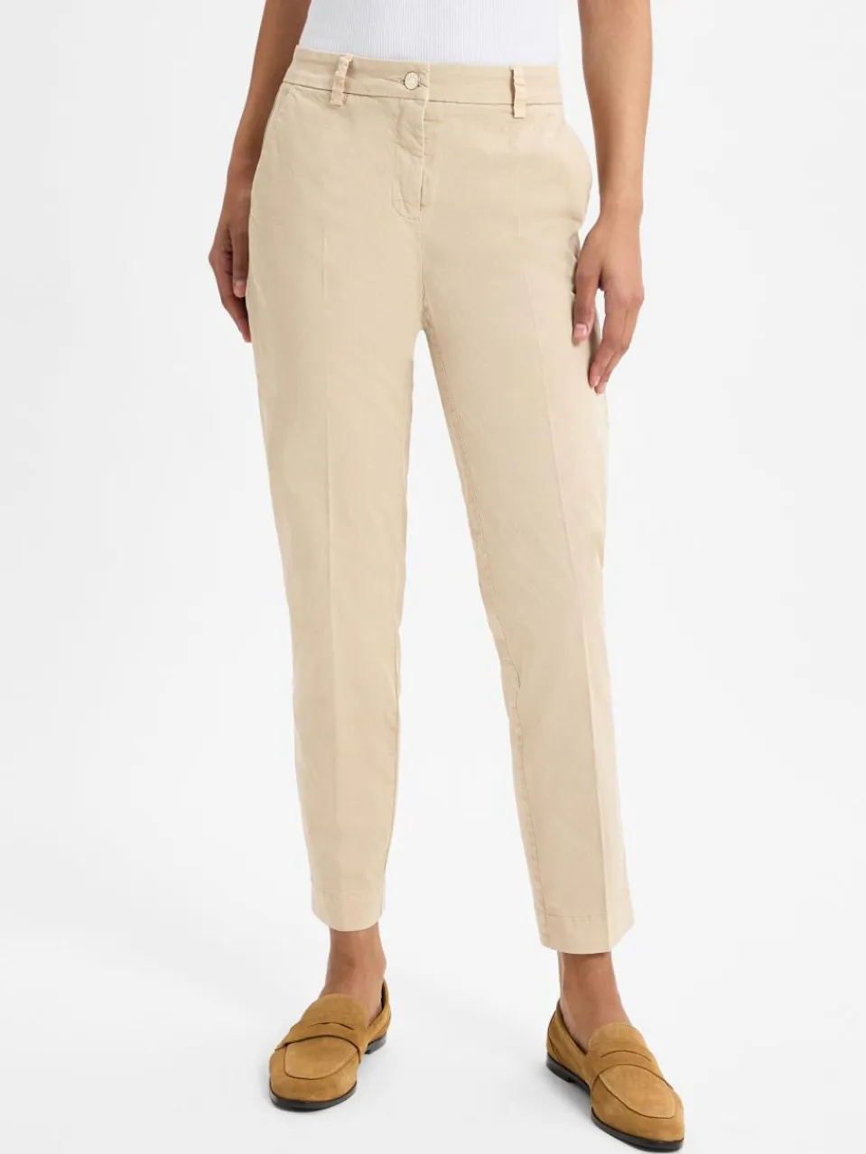 Mit ihrer leicht verkürzten Passform und der elastischen Baumwollqualität ist die Cambio Chino Karina ein wahrer Kombikünstler.