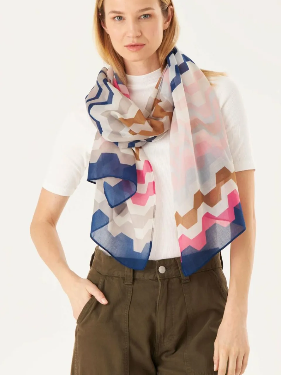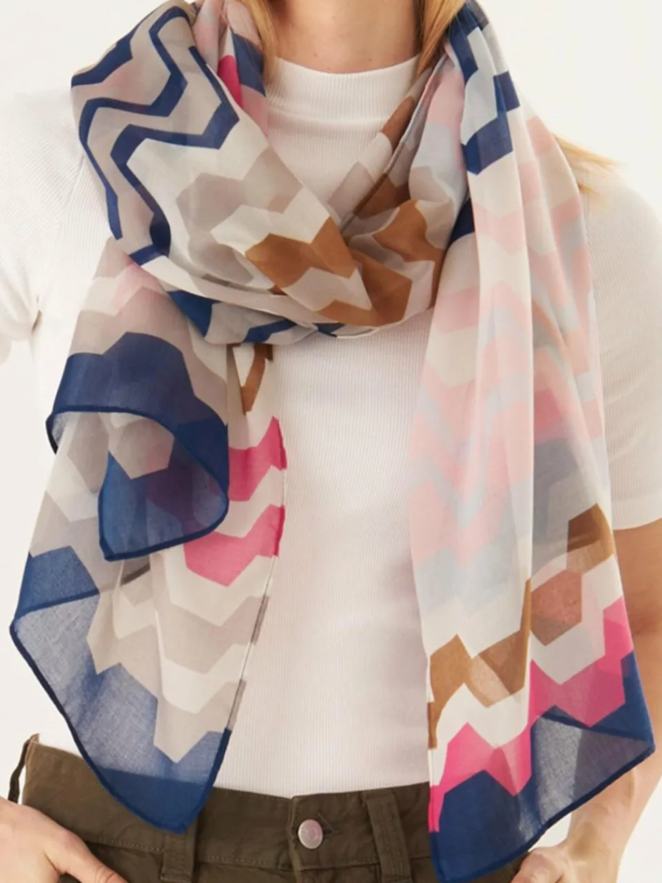 Dieser nachhaltige Schal begeistert uns mit seinem farbenfrohen Grafik-Muster. Beim Styling empfehlen wir schlichte Kombi-Partner, damit der Schal als Highlight im Look wirkt. Da der Schal für einen verantwortungsvollen Einsatz von Ressourcen aus unserer nachhaltigen #2 POLY PERFECT Qualität hergestellt ist, trägst du ihn bestimmt noch lieber. Angenehm weich und leicht ist er noch dazu.