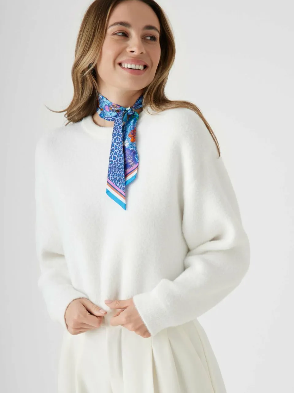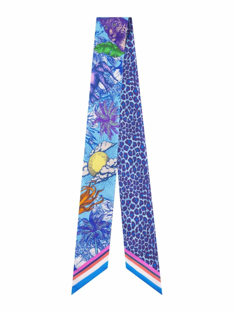 Verleihe deinem Look das gewisse Etwas: Unser Twilly aus edler Seide kombiniert ein sommerliches Motiv mit einem klassischen Muster in leuchtenden Farben. In harmonischen Tönen gehalten, ist dieses Accessoire ein stylisches Highlight für jede Gelegenheit, das jedem Outfit einen besonderen Akzent verleiht.