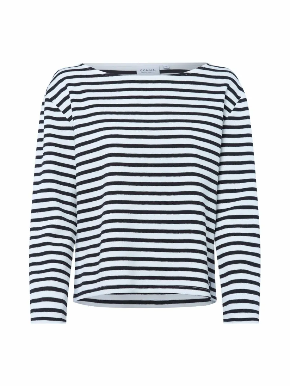 Im gestreiften Look und aus einer Baumwoll-Modal-Mischung mit Kunstfasern präsentiert sich das comma casual identity Sweatshirt.
