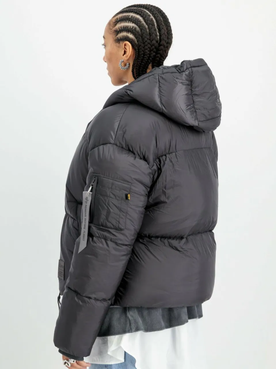 Mit der Cloud Puffer Bomber Women von Alpha Industries bist du bereit für kalte Tage. Der Relaxed Fit sorgt für Komfort und Bewegungsfreiheit, das robuste Material schützt vor Wind und Wetter. Mit Kapuze, Utility Pocket, RFB Tag und individuell verstellbarem Saum bietet die Jacke praktische Features. Zwei Außentaschen und eine Innentasche bieten Stauraum. Gummiertes Label, Small Logo und cleanes Design machen sie zum stylischen Begleiter für den Winter – funktional, warm und modern.