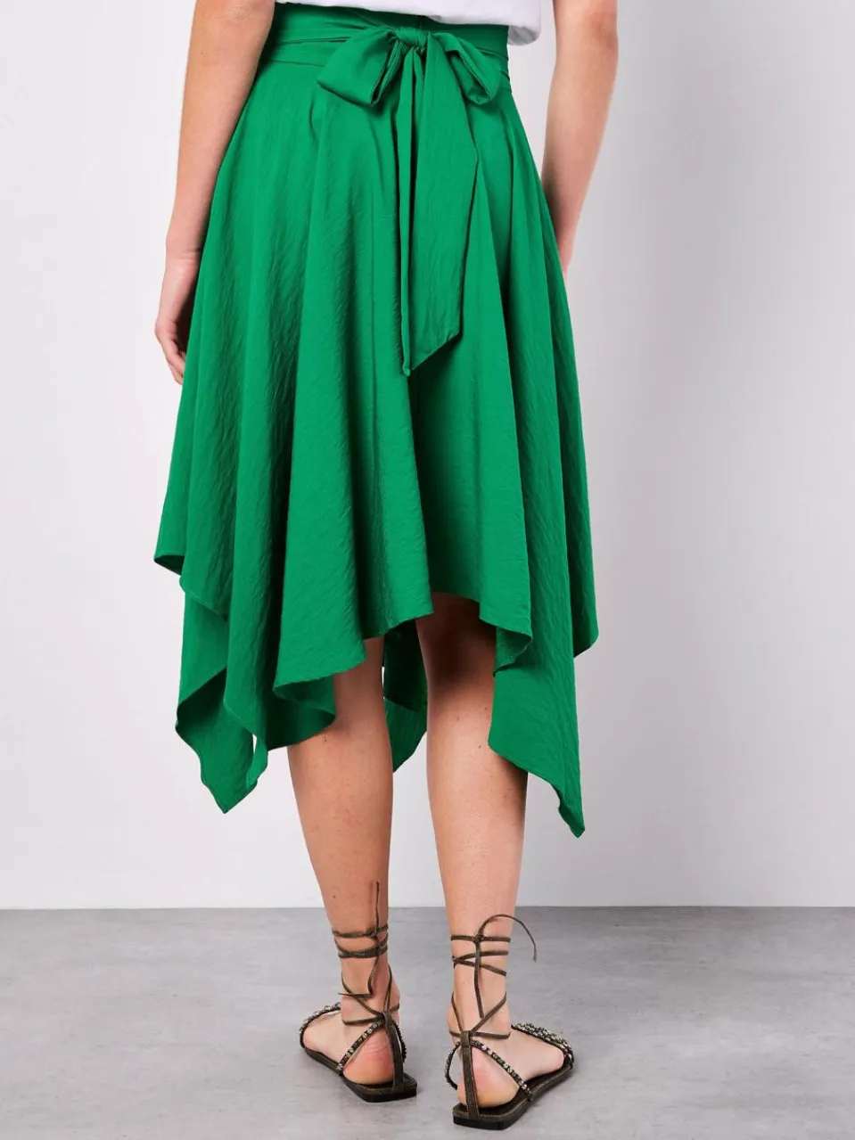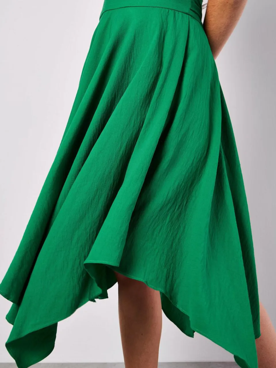 Bringen Sie Ihre Garderobe mit diesem sonnenscheintauglichen Rock zum Strahlen. Er ist leicht und gewebt, fällt auf eine Midi-Länge und verfügt über einen Taschentuch-Saum, einen Reißverschluss und einen Stoffgürtel für eine schmeichelhafte Passform.
