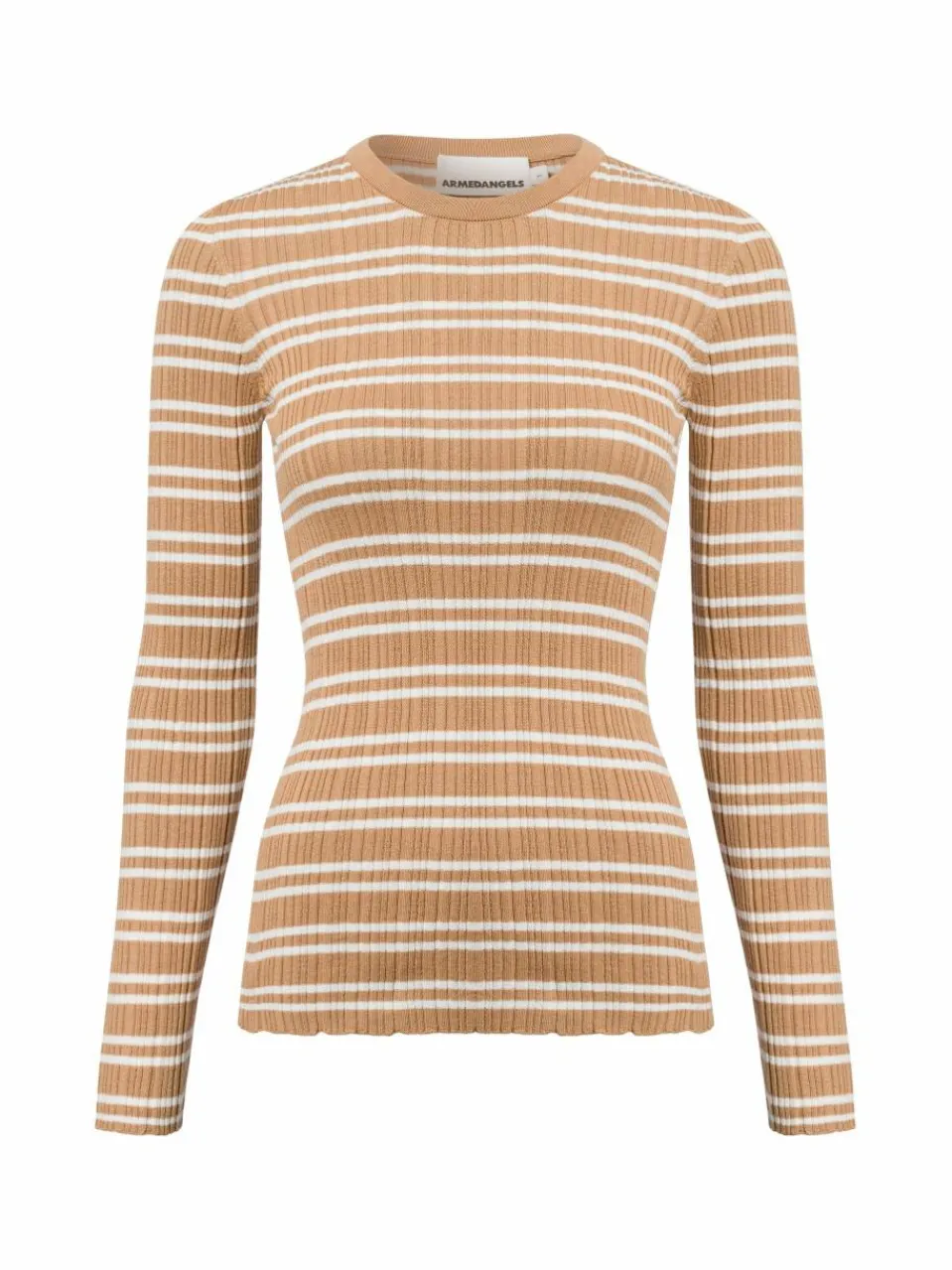 Mit seiner schmalen Passform passt der Pullover Alaania von ARMEDANGELS aus grobem Rippstrick und reiner Baumwolle perfekt zu weiten Hosen.