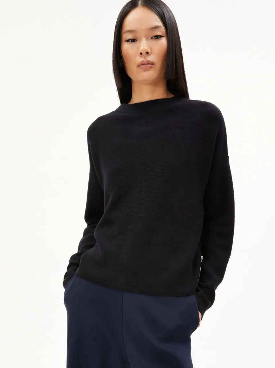 Die spezielle Strickverarbeitung hebt den Loose Fit des Baumwollpullovers Merinaa von ARMEDANGELS besonders wirkungsvoll hervor – ein vielseitiges Styling-Essential.