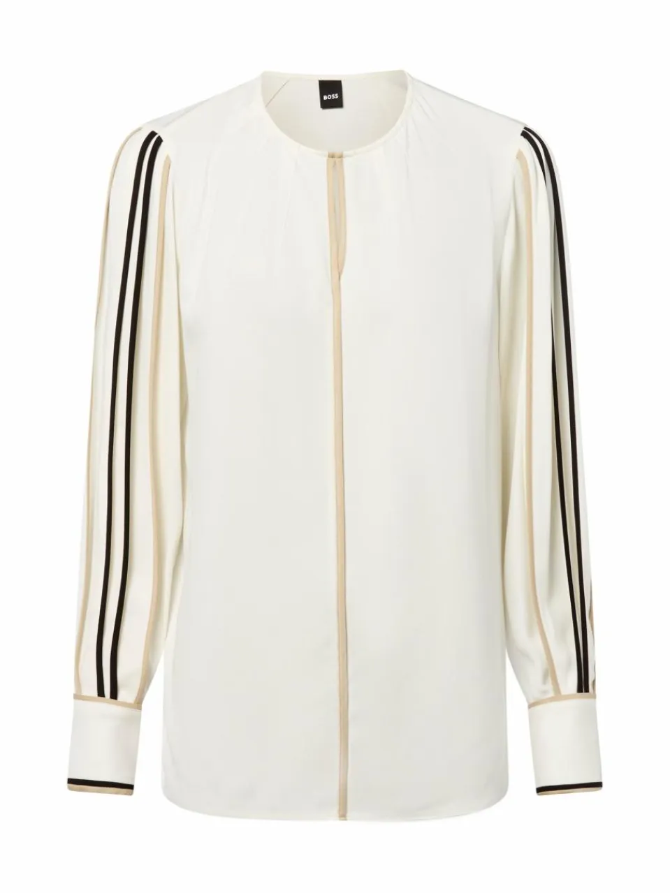 Das Blusenshirt Banariah von BOSS zeichnet sich durch den sportlich-eleganten Look mit Kontraststreifen als ikonisches Highlight für variable Styles aus.