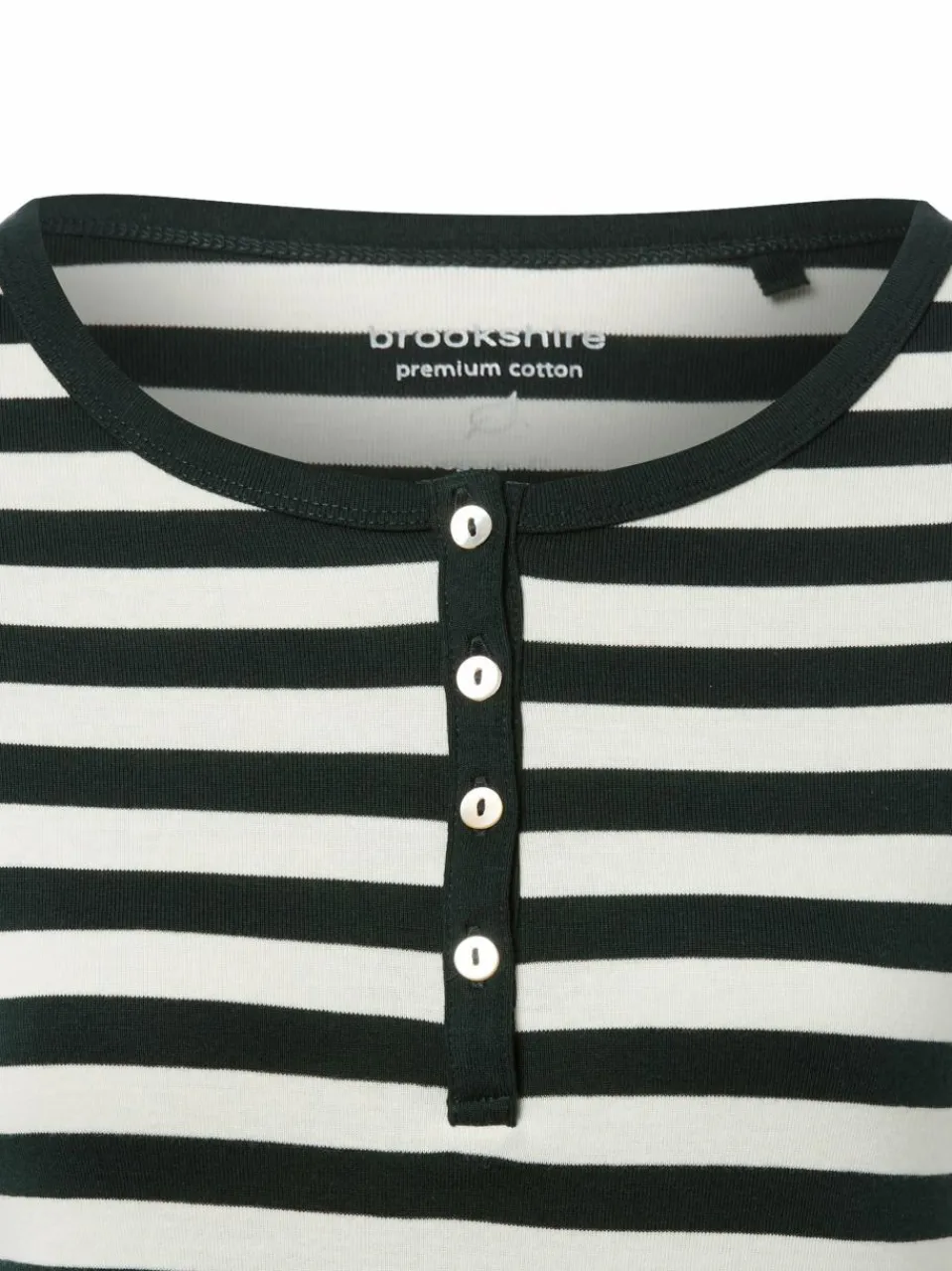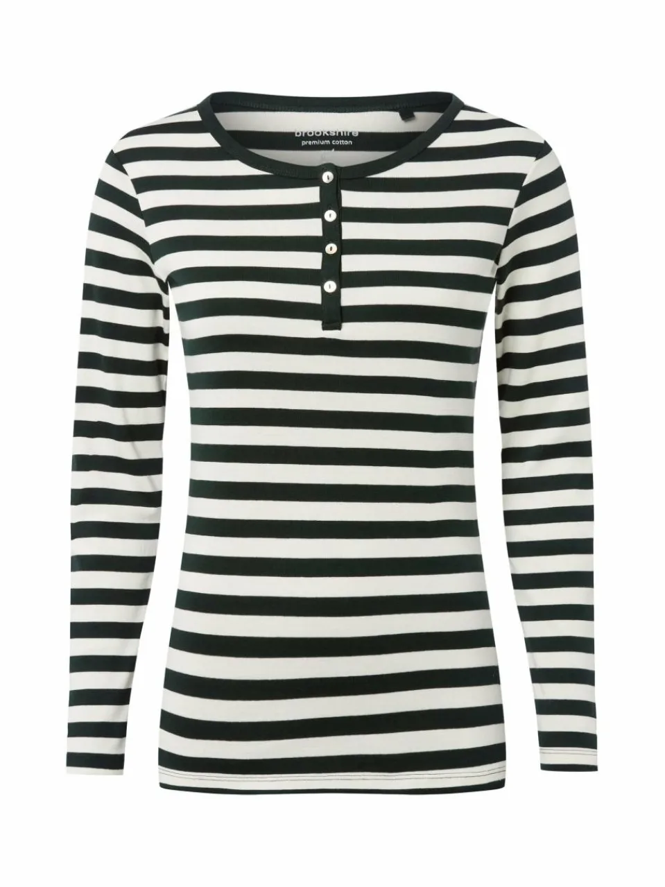 Bequemes Ringel-Langarmshirt mit kurzer Knopfleiste von Brookshire – zeitloser Style und weich auf der Haut, perfekt für jeden Tag.