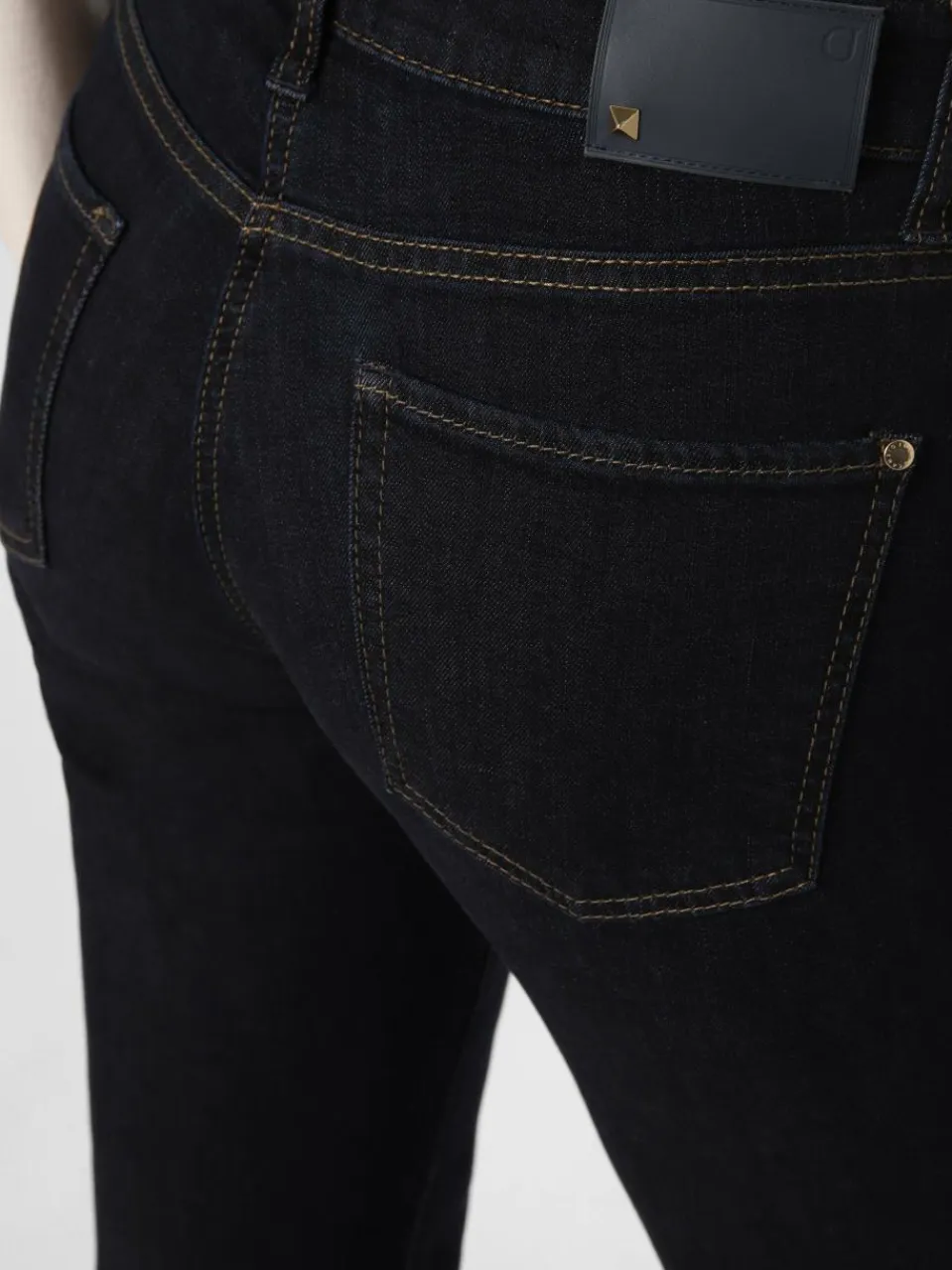 - Label-Aufnäher aus Leder hinten am Bund
