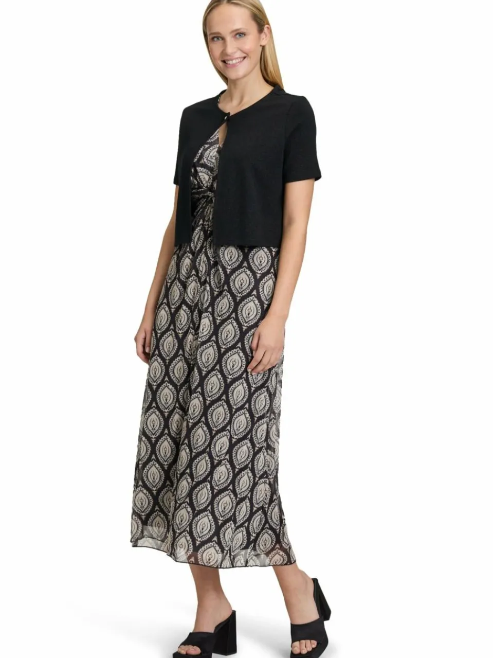Glitzerfäden verleihen der Strickjacke von Cartoon ein glamouröses Finish, akzentvoll ergänzt durch den Knopf mit funkelnden Ziersteinen – perfekt über Blusen, Tops oder leichten Pullis.