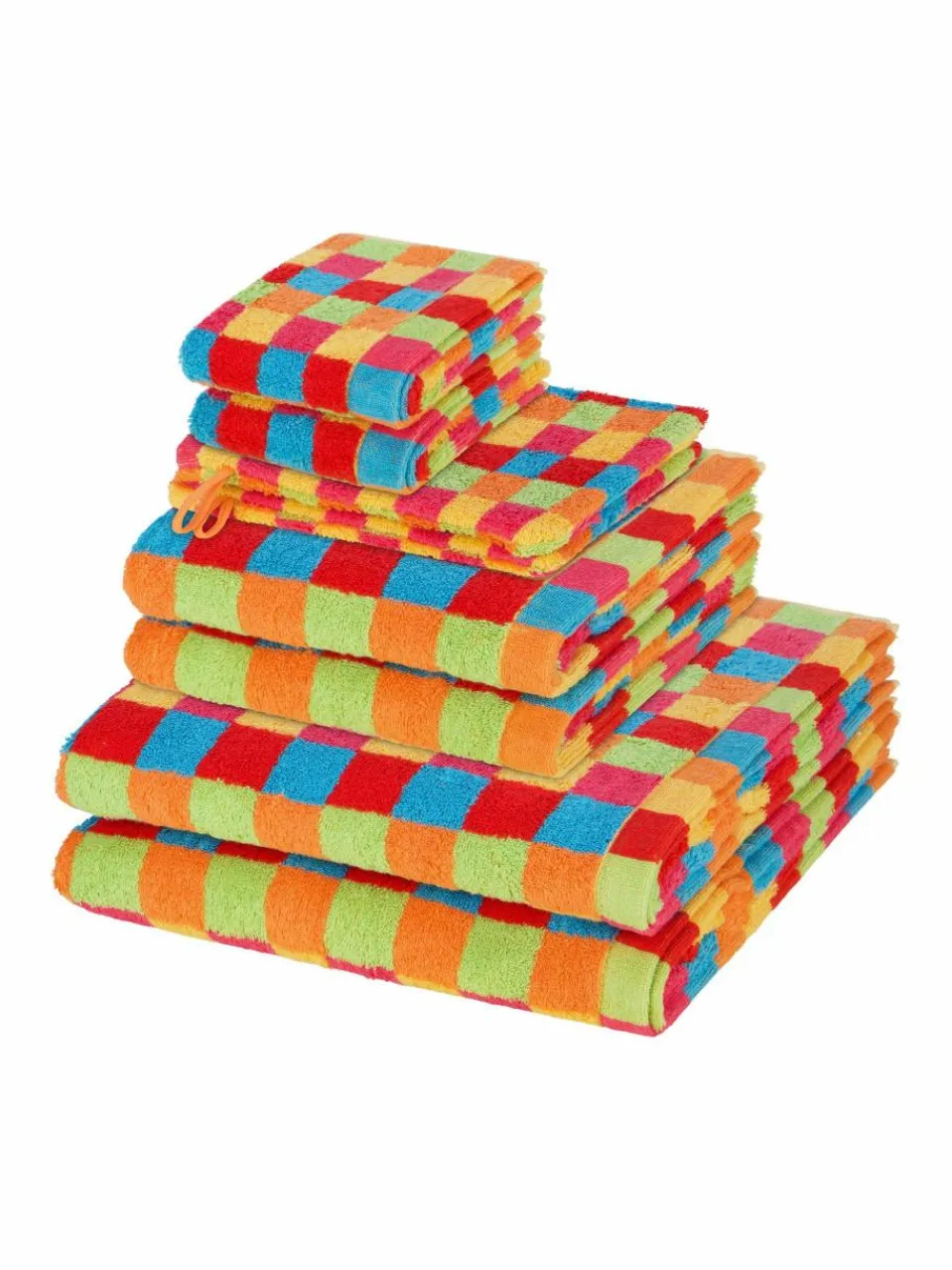 Die Handtücher der Serie Lifestyle bestechen durch ihre besonders flauschige Qualität und das moderne, farbige Karo-Design. Hergestellt aus reiner Baumwolle, sind sie nicht nur angenehm weich, sondern auch pflegeleicht und trocknergeeignet. Mit ihrer frischen und farbenfrohen Optik bringen sie lebendige Akzente in jedes Badezimmer und sorgen für ein luxuriöses Wohlfühlerlebnis. Set besteht aus: 2 X Handtuch (50 X 100cm), 2 X Duschtuch (70 X 140cm), 2 X Gästetuch (30 X 50cm), 2 X Waschhandschuh (16 X 22cm)
