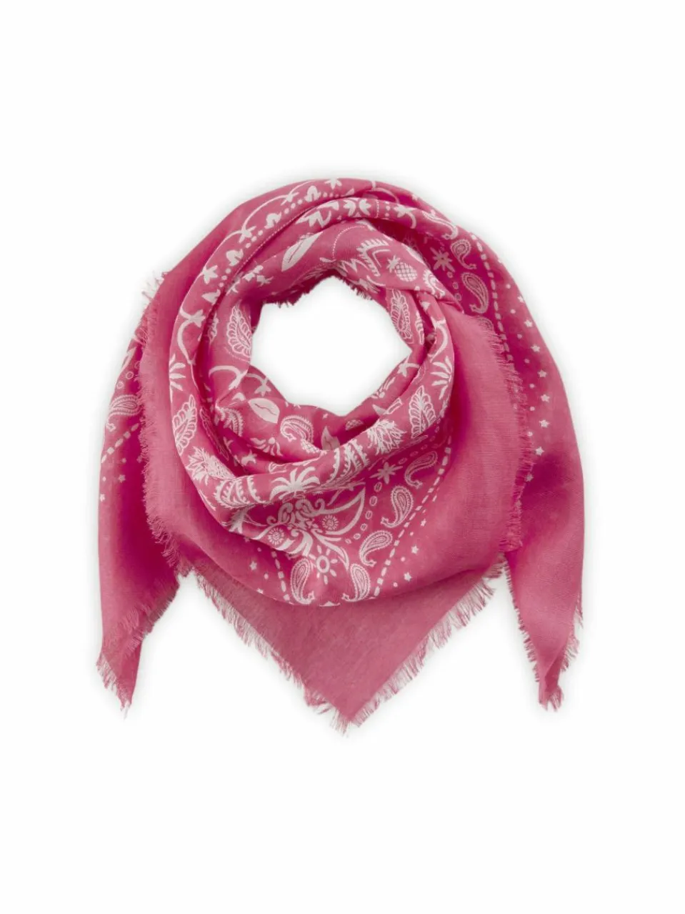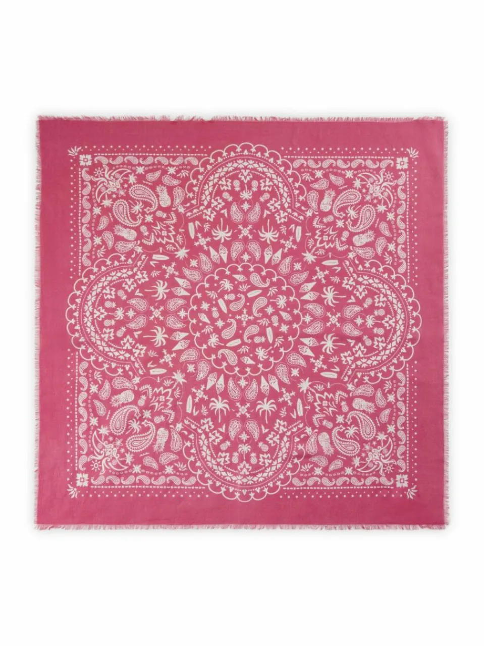 Easy Cool – mit einem Hauch Sommerfeeling. Dieses stylische Carré aus einem soften Modal-Baumwoll-Mix verbindet klassischen Bandana-Charme mit liebevoll verspielten Details: In das weiße Paisley-Muster sind sommerliche Motive wie Softeis, Palmen, Ananas und Surfbretter eingearbeitet – dezent, charmant und absolut einzigartig. Mit seiner großzügigen Größe von 70 x 70 cm ist es ein echtes Multitalent: Ob lässig um den Hals, als Hairwrap, Kopftuch, Taschen-Accessoire oder sogar als Bandeau-Top.