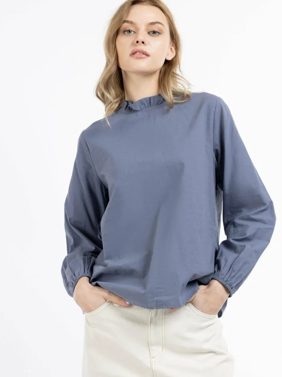 Die unifarbene Baumwollbluse von DreiMaster Vintage vereint romantisches Flair mit lockerem Vintage-Design. Gefertigt aus luftiger Baumwolle, wird die Bluse von einem Rüschenkragen definiert. Die langen Ärmel enden in elastischen Abschlüssen, was ihnen mehr Volumen und Lockerheit verleiht.
