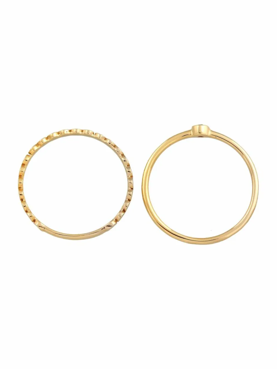 Dieses elegante Ring-Set ist ein zeitloses Must-have für jedes Schmuckkästchen. Der filigrane Solitärring wird von einem weißen Diamanten (0.03 ct.) im Brillantschliff geschmückt. Dazu kombiniert ist ein Bandring im harmonischen Plättchen-Style. Dieser modische Fingerschmuck ist ein absolutes It-Piece und lässt sich einzeln oder in Kombination miteinander tragen. Ergänze deine Schmucksammlung um diesen stilvollen Goldschmuck.Sie erhalten den Diamantschmuck in einem eleganten Schmuck-Etui.
