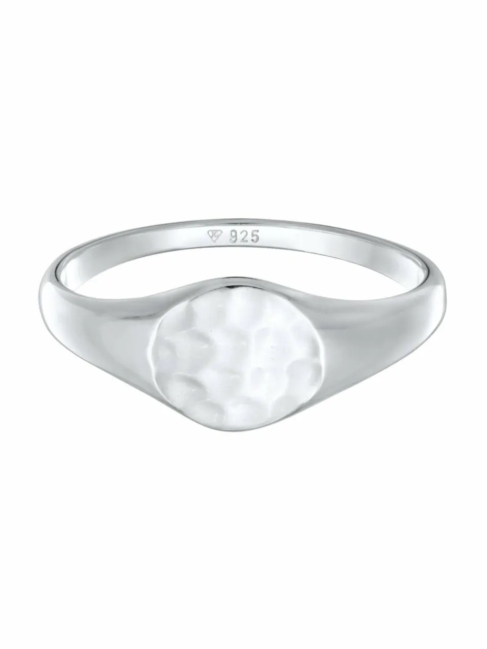 Ein trendiger Siegelring der durch sein kontrastreiches Design überzeugt. Die gehämmerte Platte setzt das Schmuckstück gekonnt in Szene. Klar geformte im angesagten Hammer Style ist dieser Ring ein absolute Eye-Catcher am kleinen Finger der Trägerin.